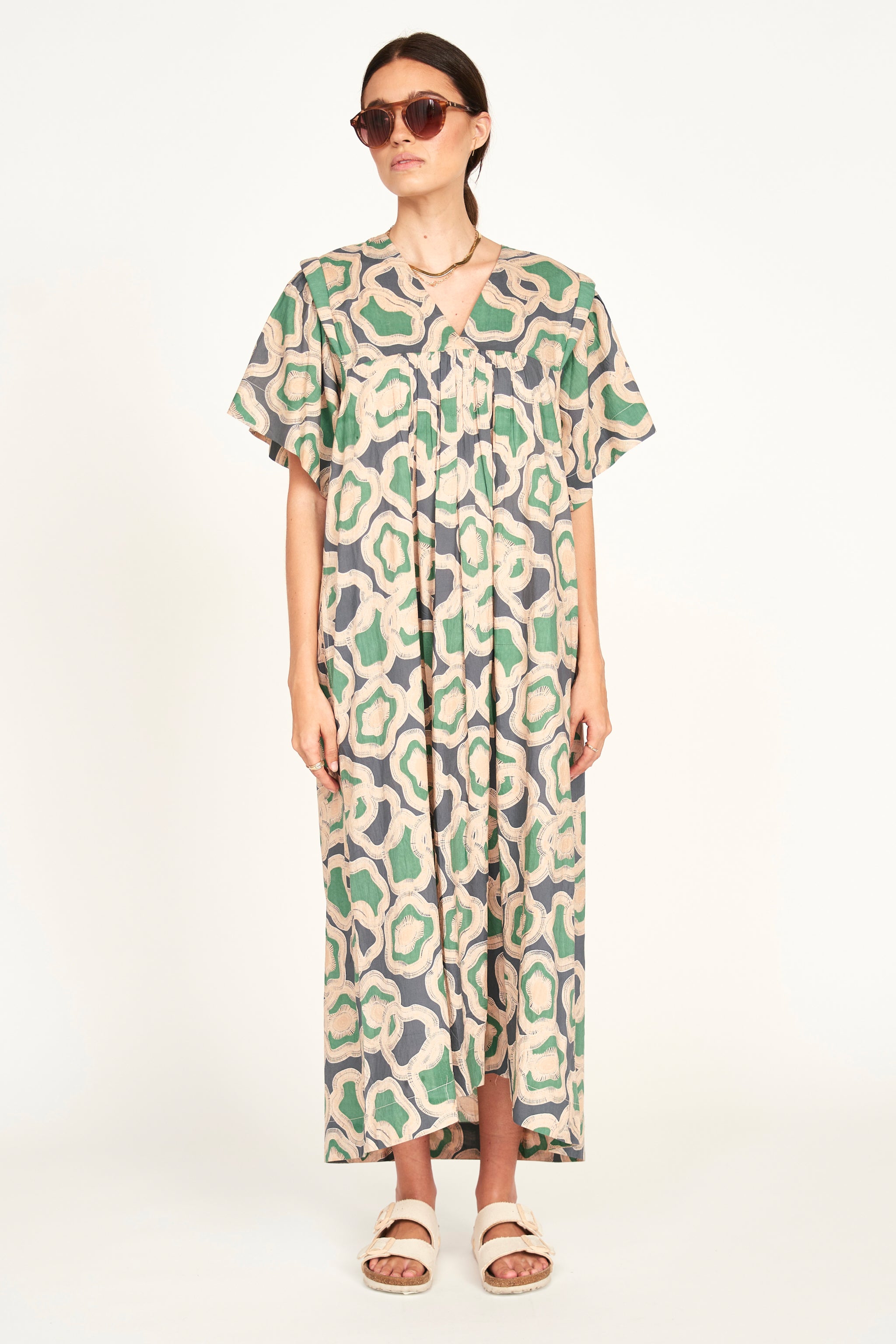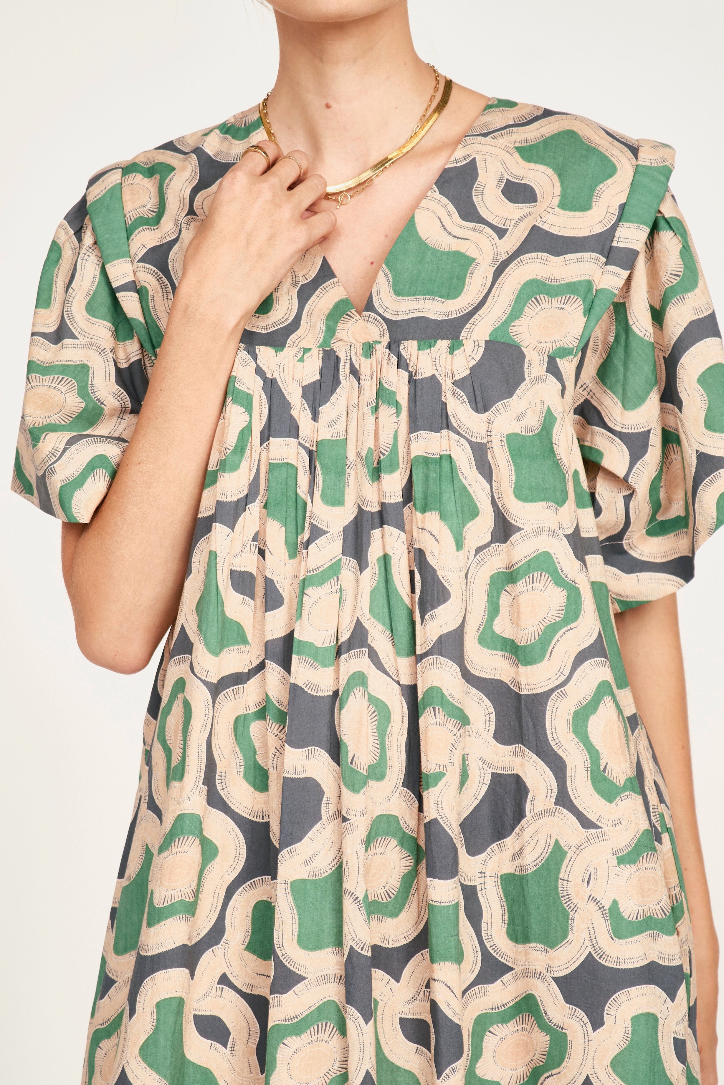 We collaborate with a family of 7th generation master printers in Bagru, India to create our screen printed fabric. Artisans use screens, frames, and dye to transfer print designs by hand onto fabric.