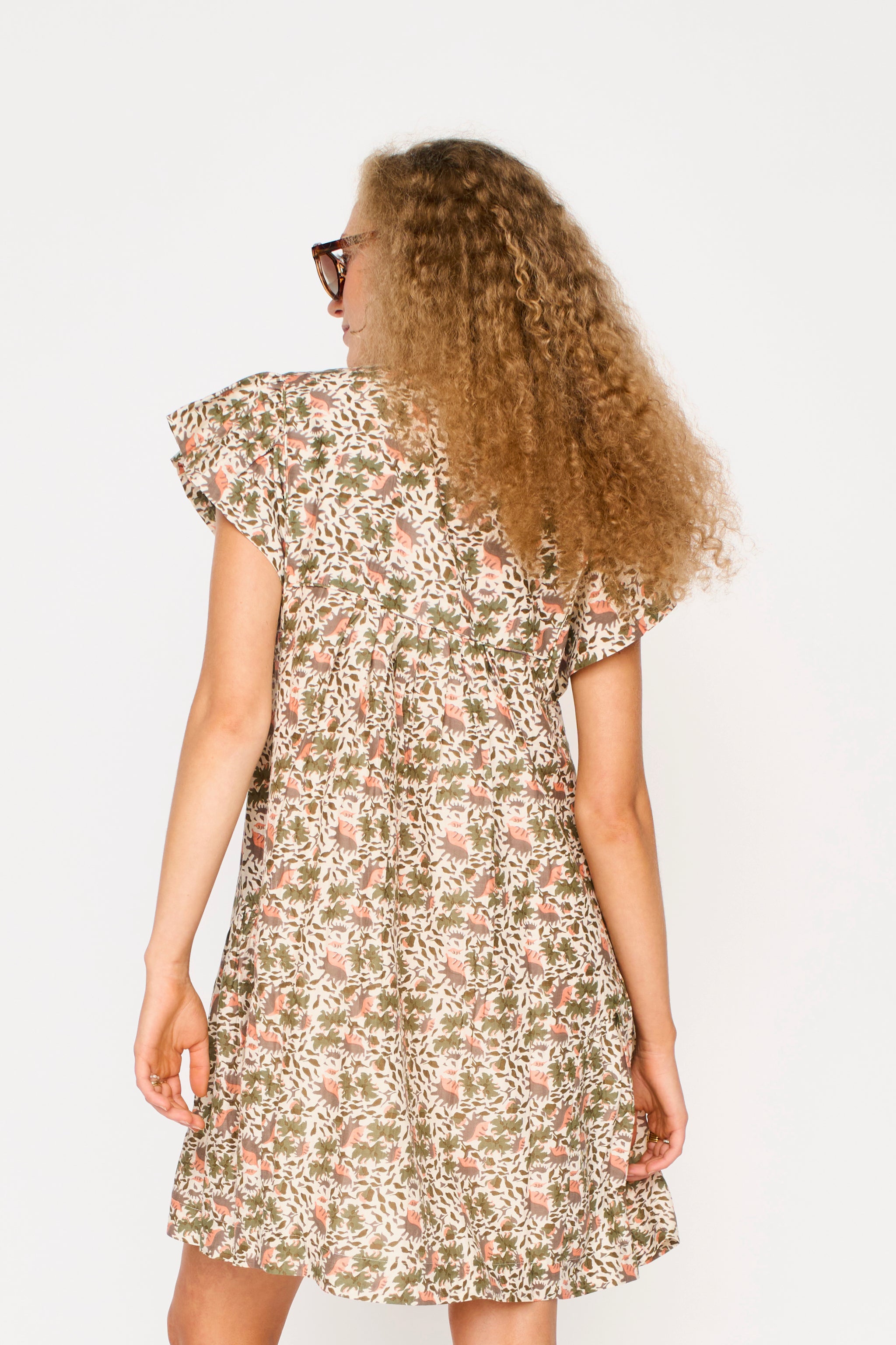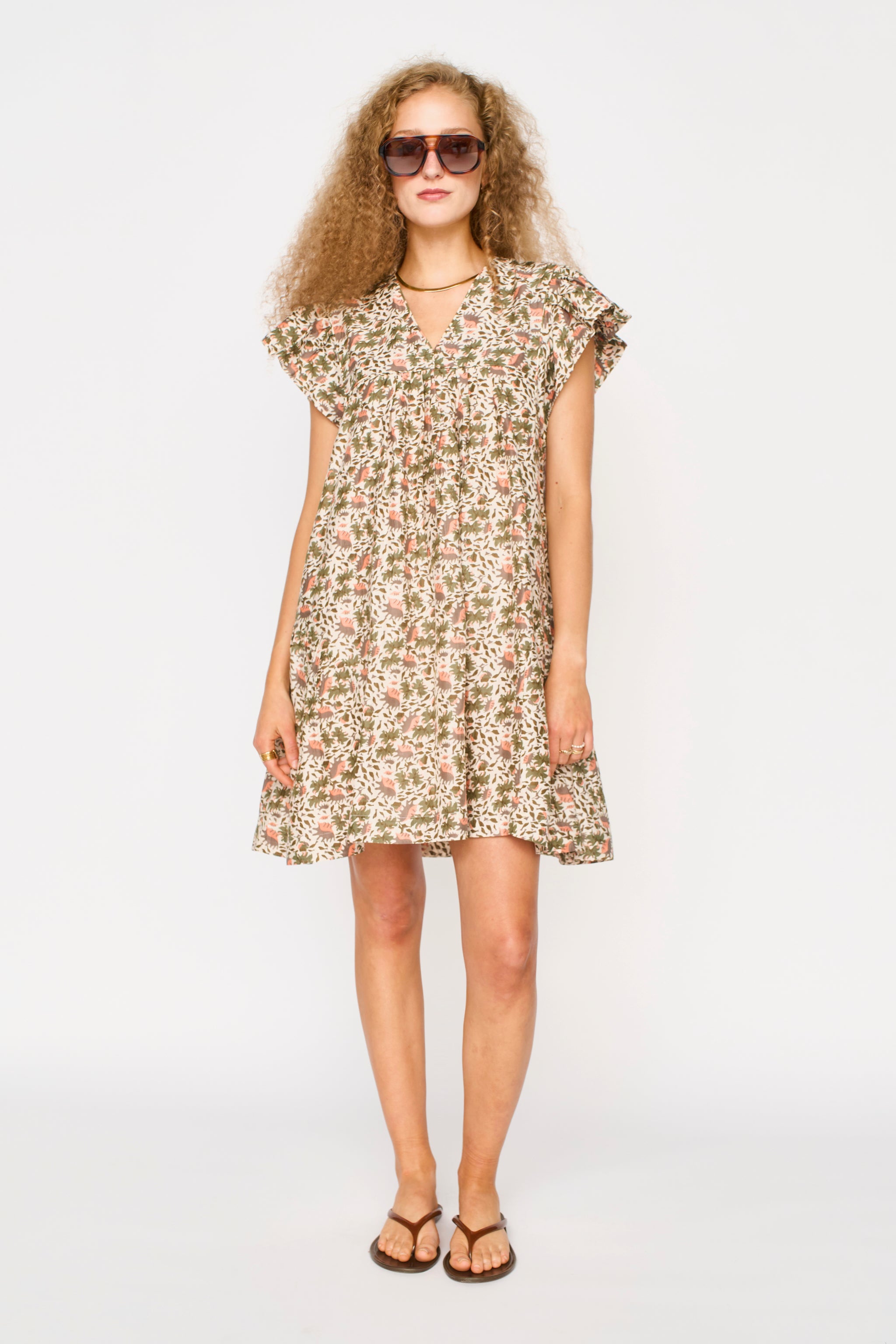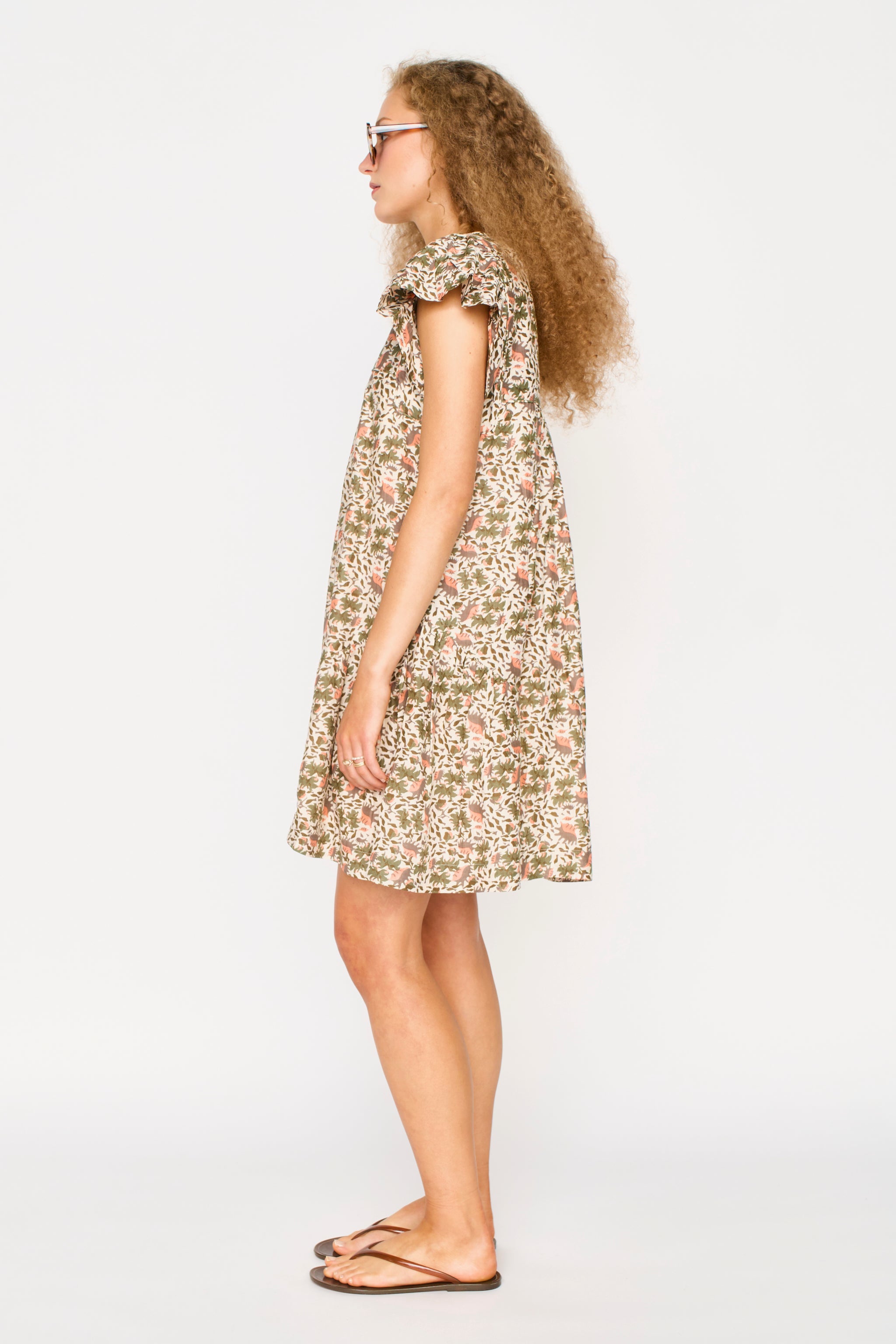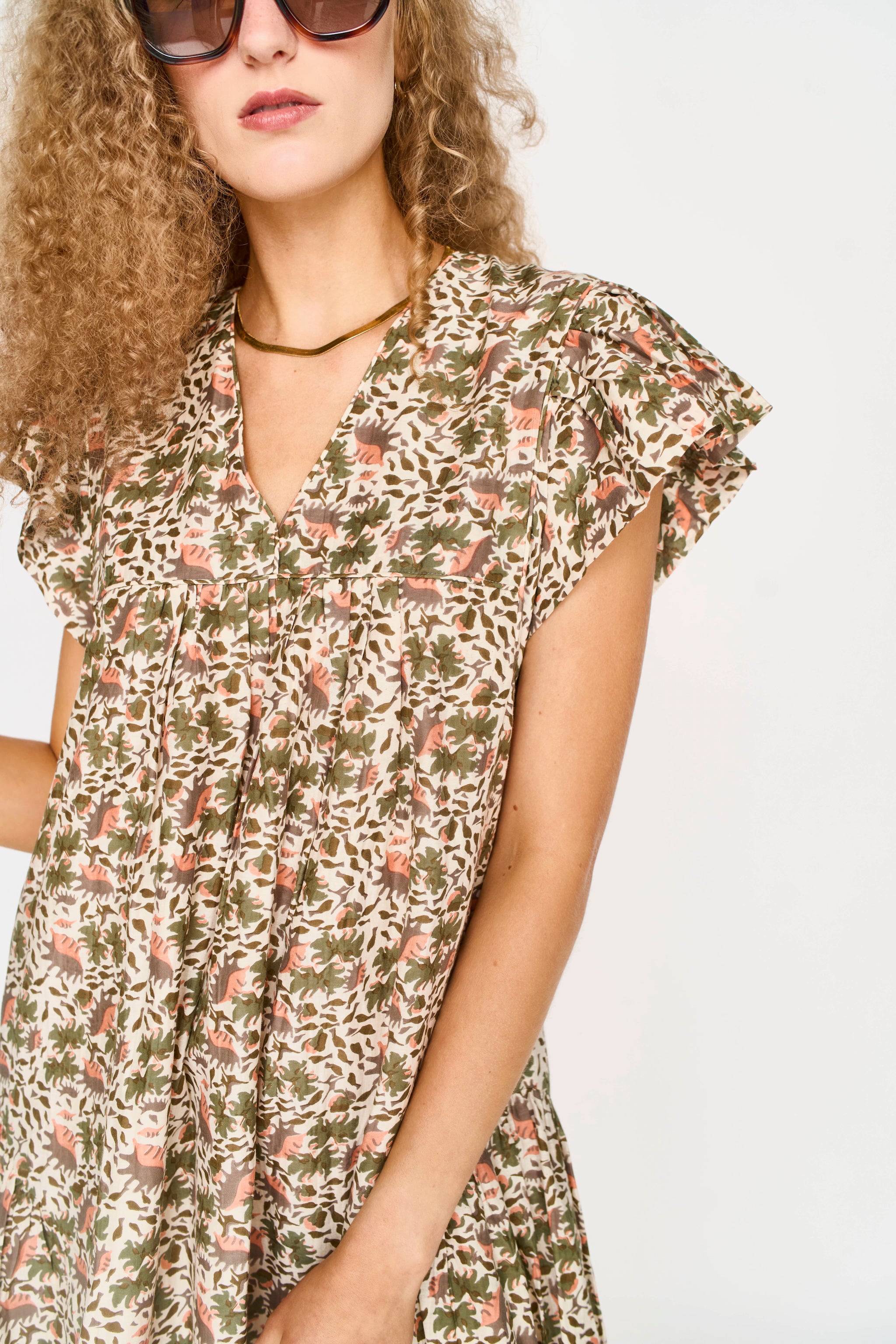 Fits true to size with a swingy bodice. If between sizes, consider sizing down.