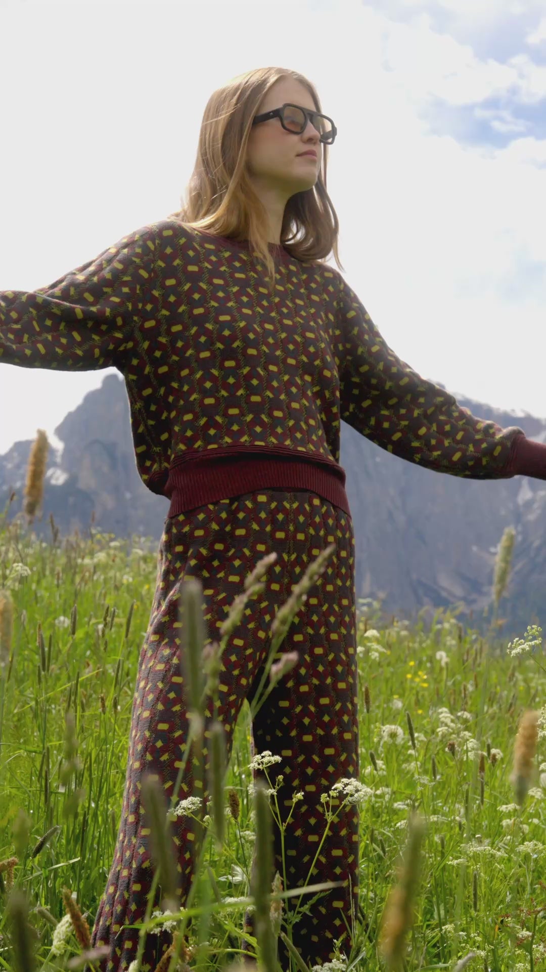 - Jacquard knit crew neck sweater with subtle hearts in the pattern