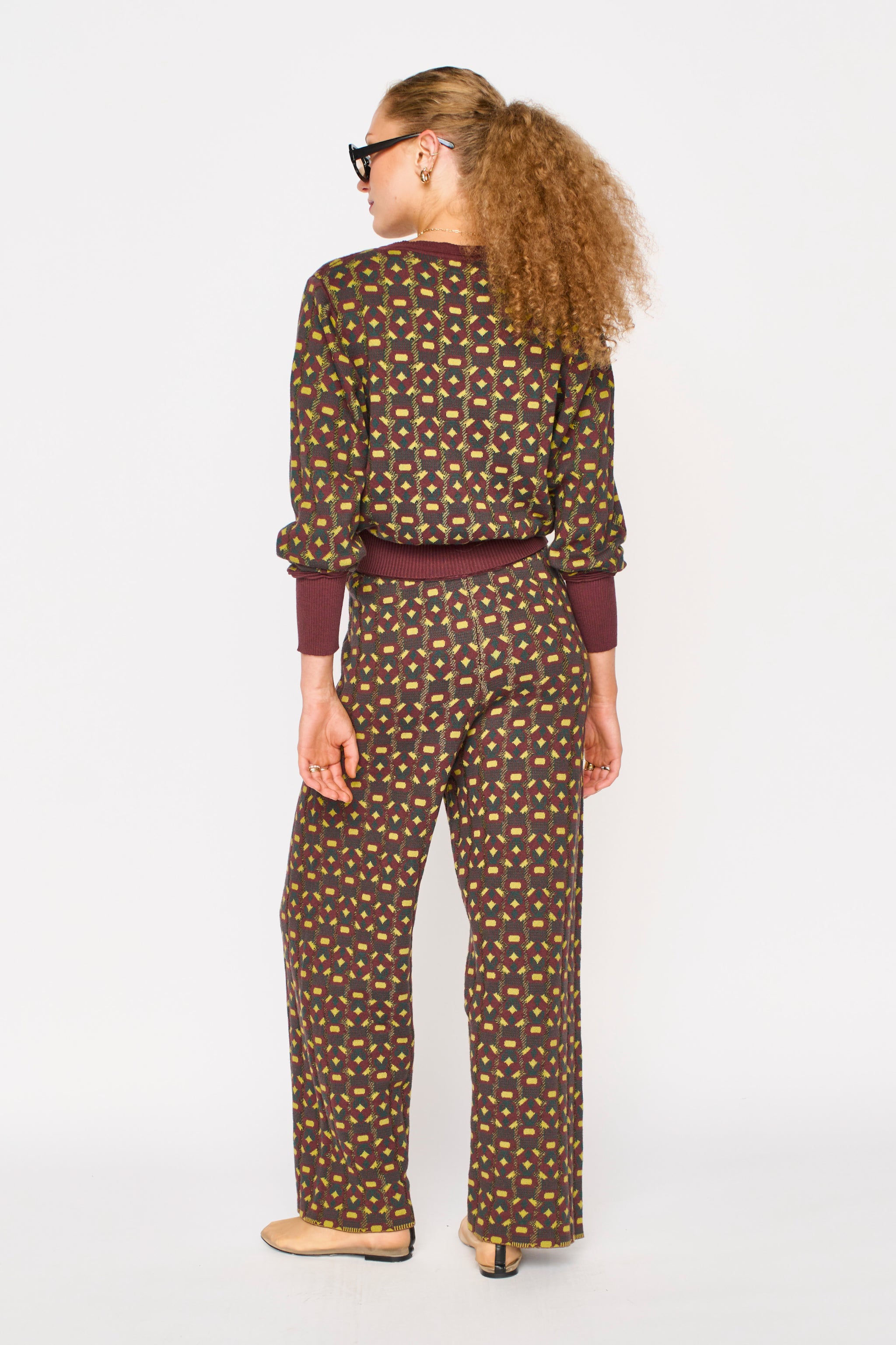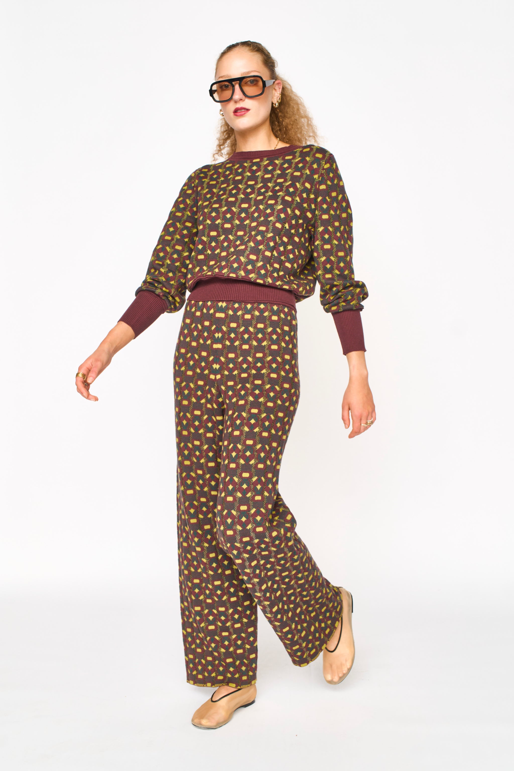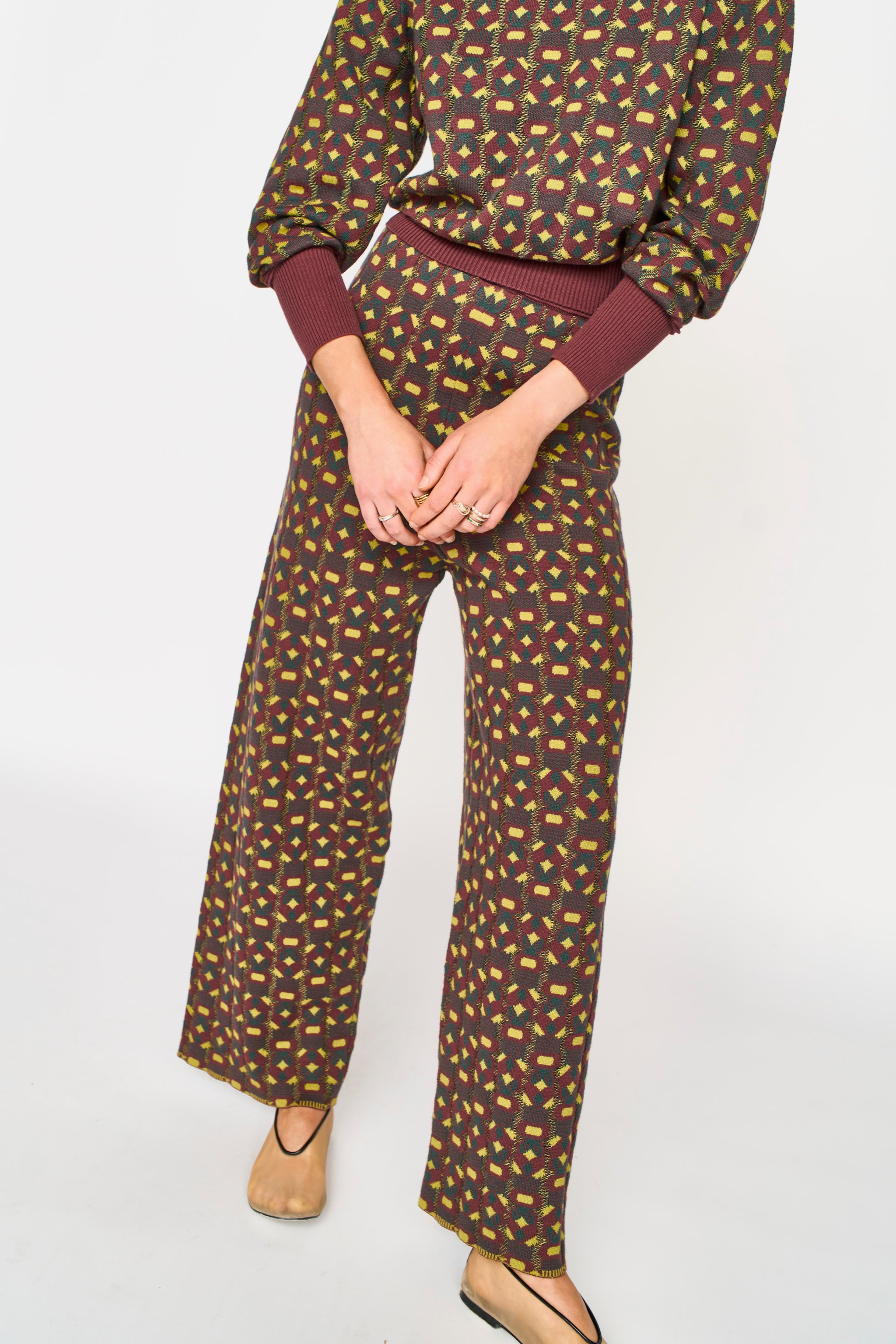 - Jacquard knit pant with subtle hearts in the pattern
