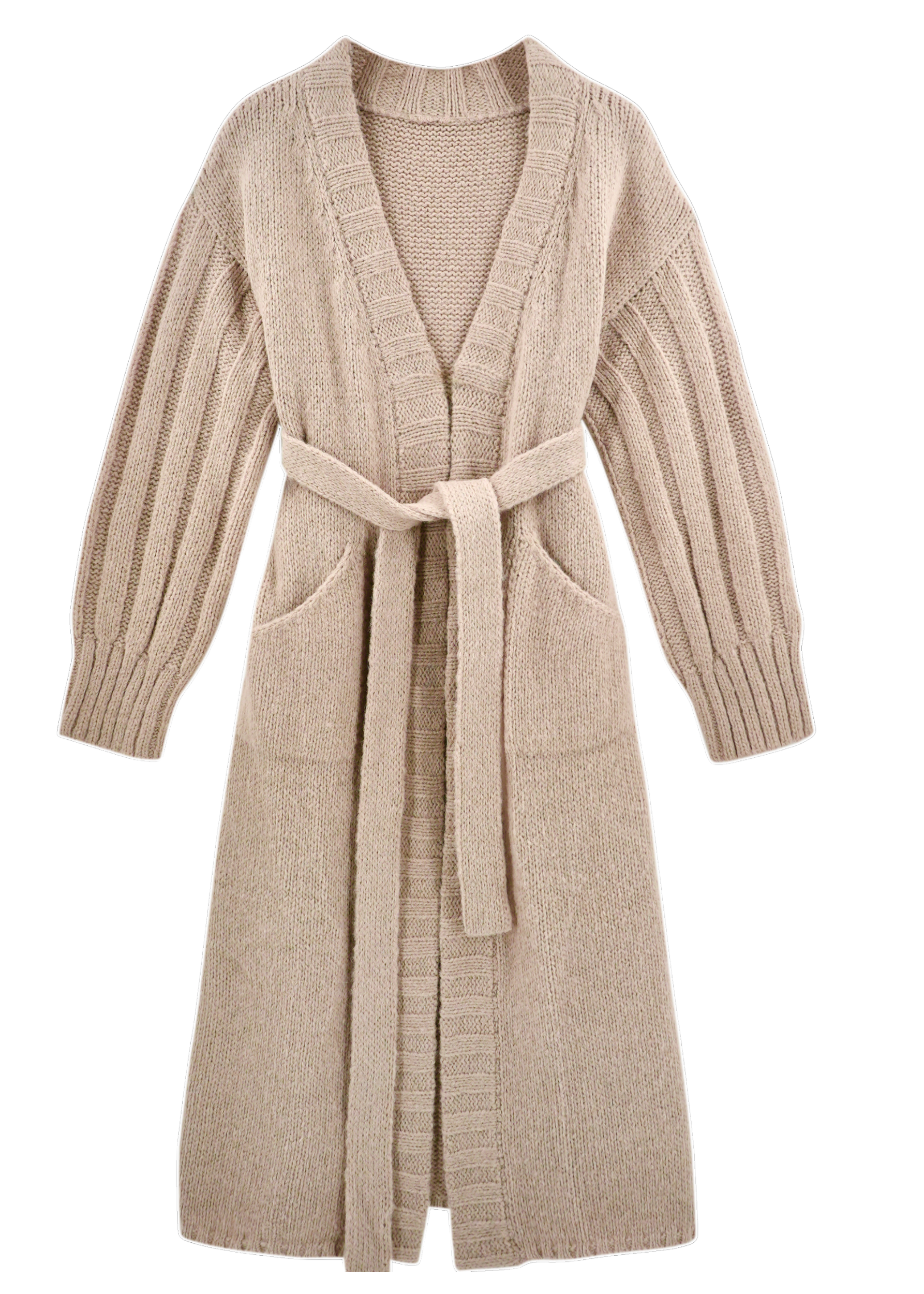 - Long cozy cardigan with ribbed sleeves
