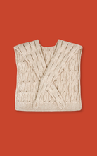 - Hand knit shawl shaped to drape on shoulders and tie in front
