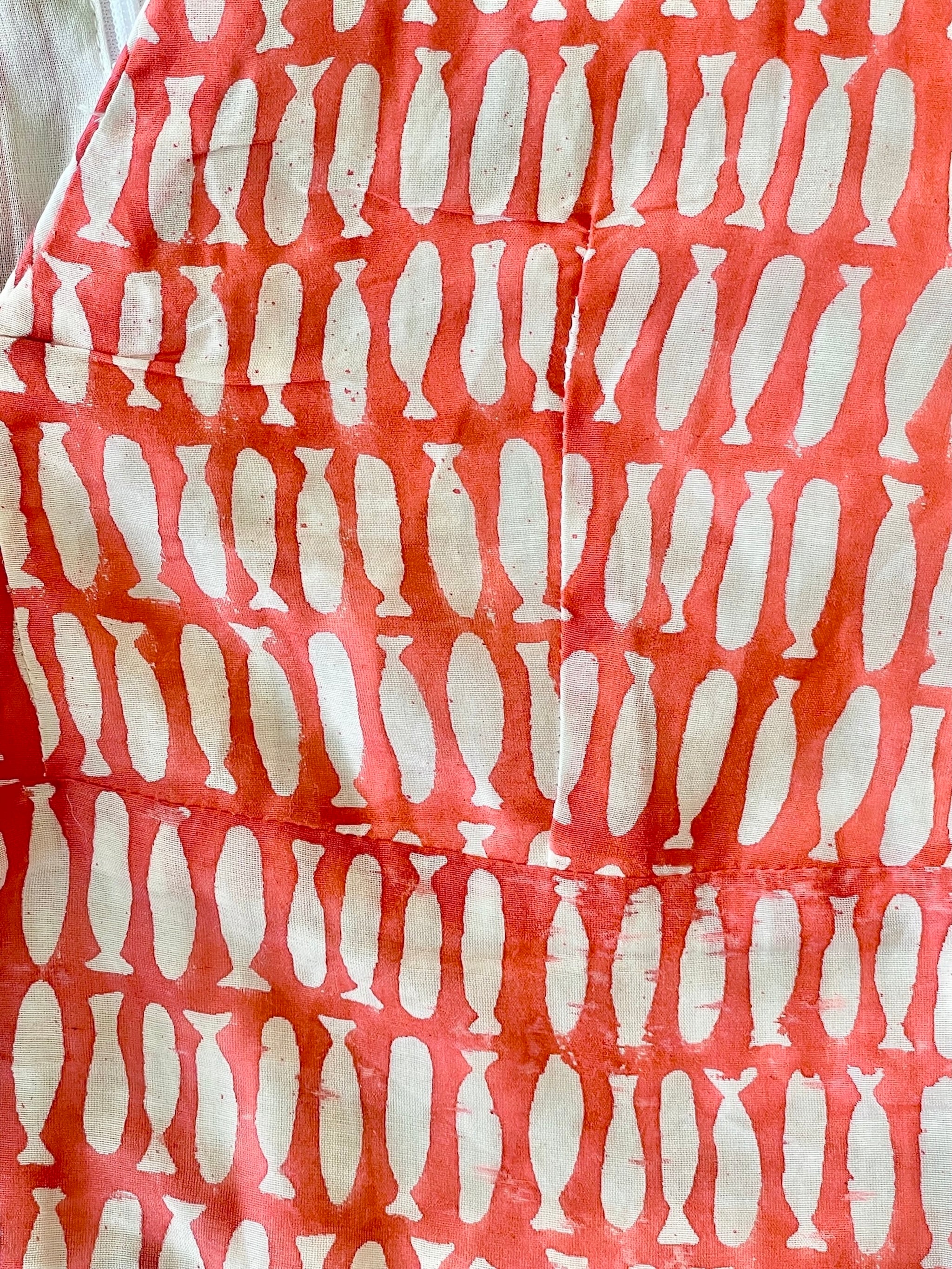We collaborate with a family of 7th generation master printers in Bagru, India to create our block printed fabric.