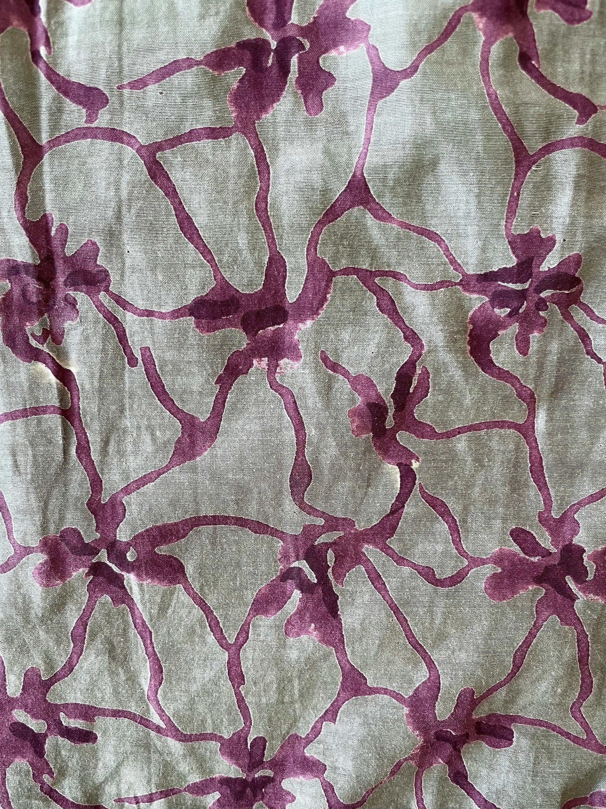 This blouse is a factory second with color and print variations that are outside of our normal tolerance. Please refer to second photo for example of the print imperfections. Photo represents the types of fabric defects, but exact shade and location of the defects vary from piece to piece.