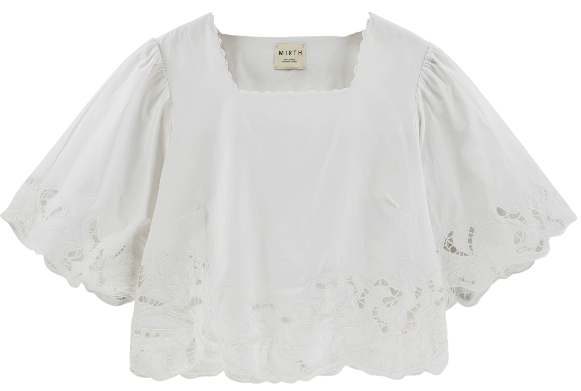 - Boxy fit blouse with square scalloped neckline