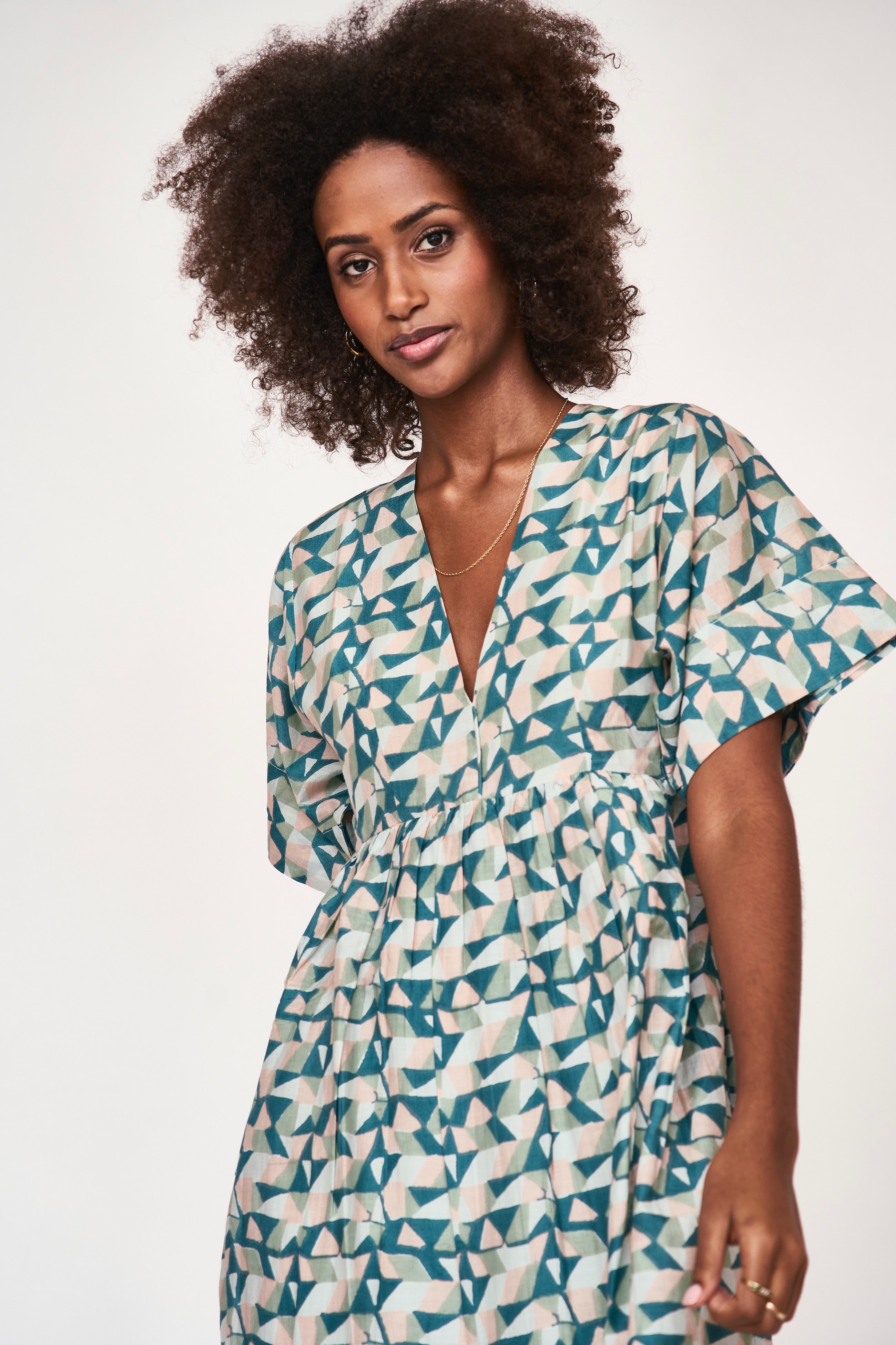 the deep v and colorful print make this is an easy pick for sunny days. wear with sneakers for daytime errands or dress it up with a strappy sandal for dinner.