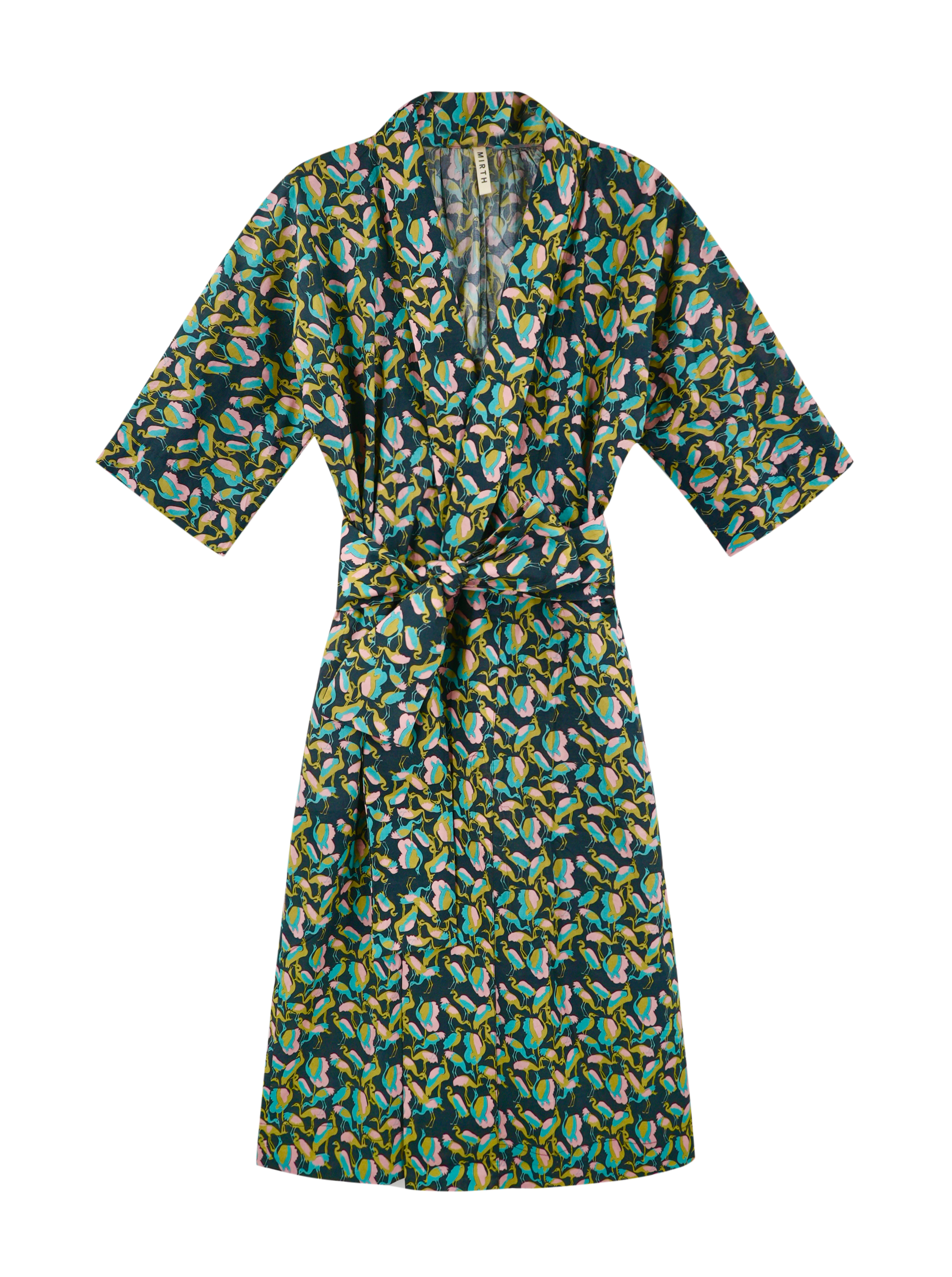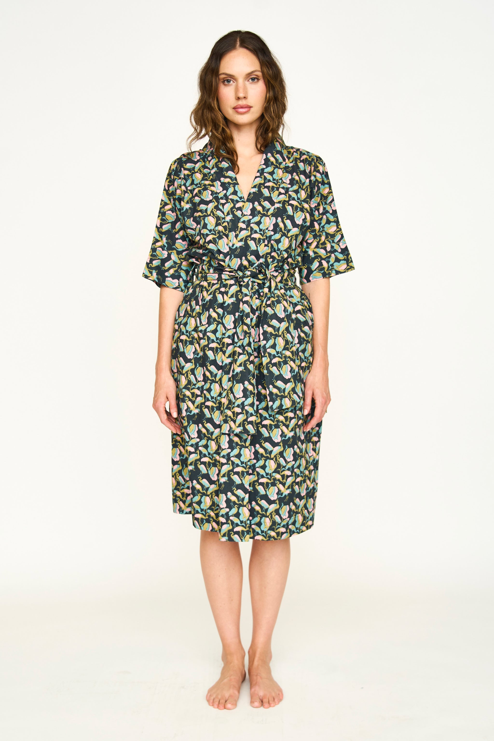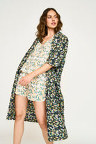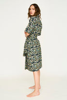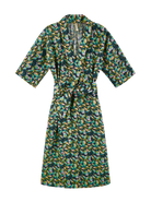 - Hand screen printed shawl collar cotton robe