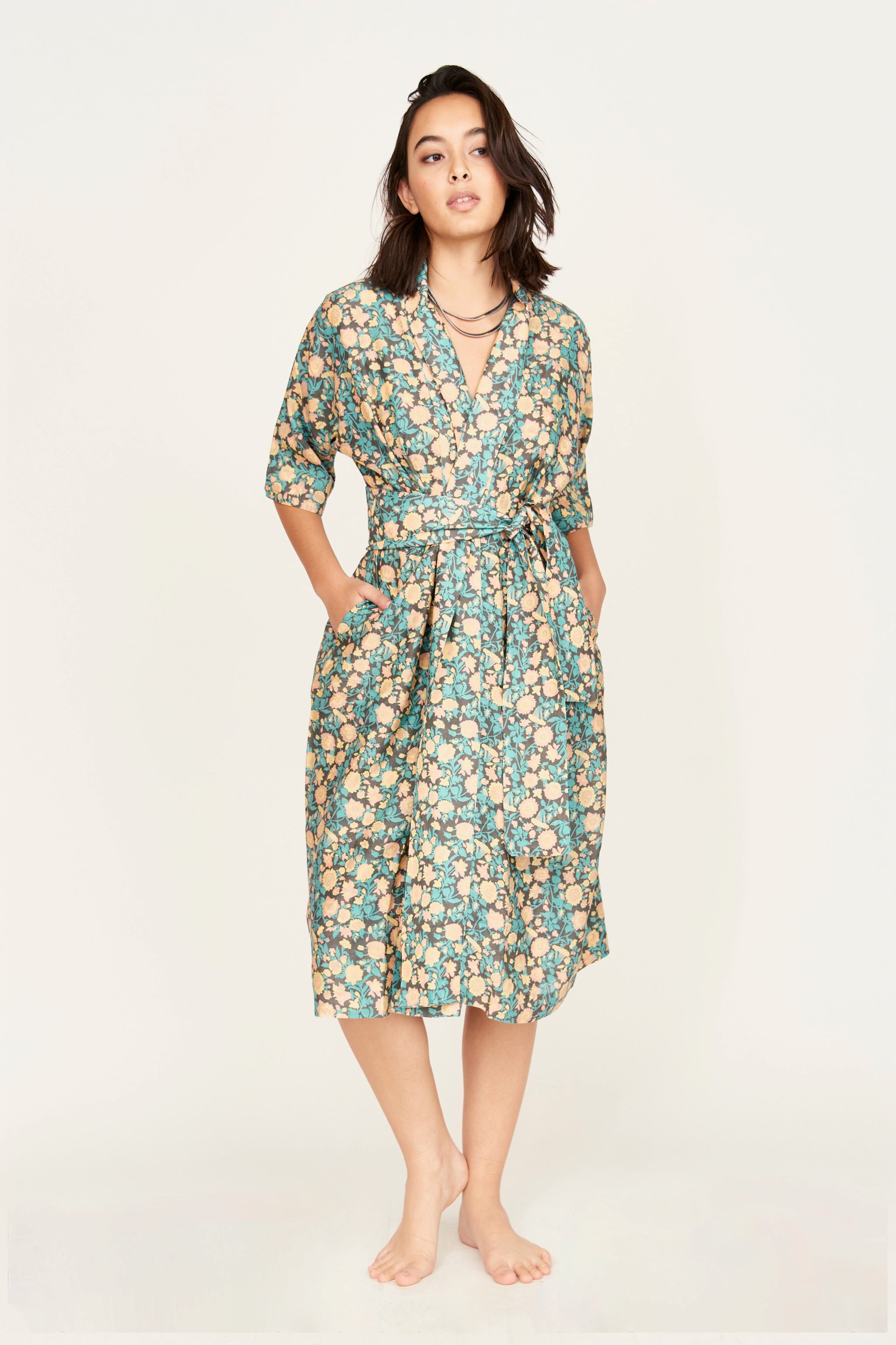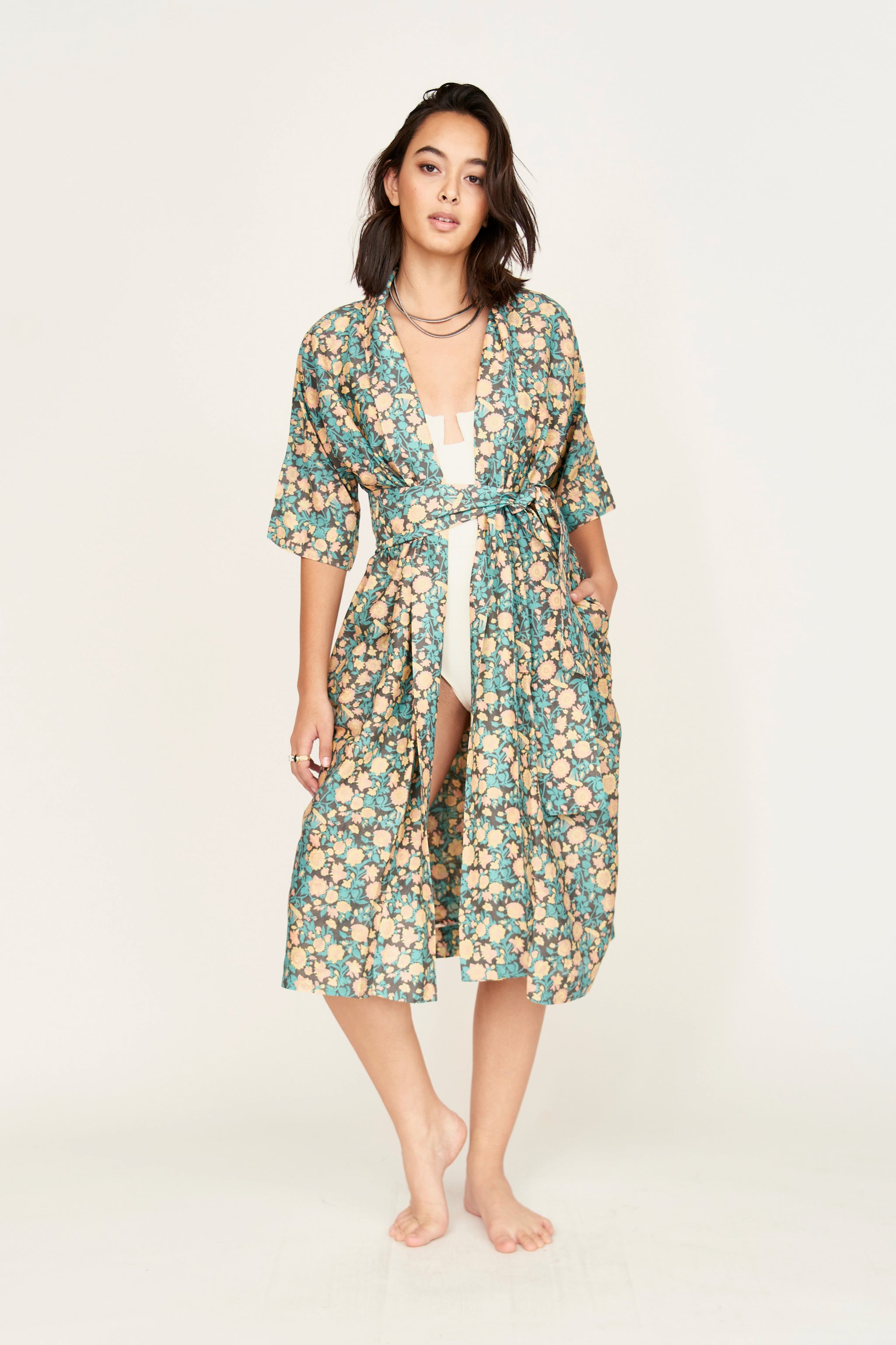 - Elevated version of our classic robe robe: fabricated in a double layer of lightweight & soft cotton/silk