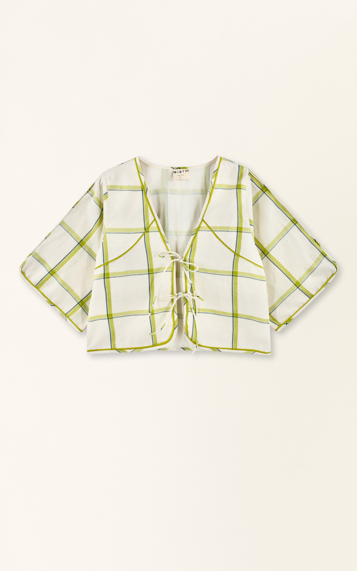 - Short sleeved, v-neck plaid top