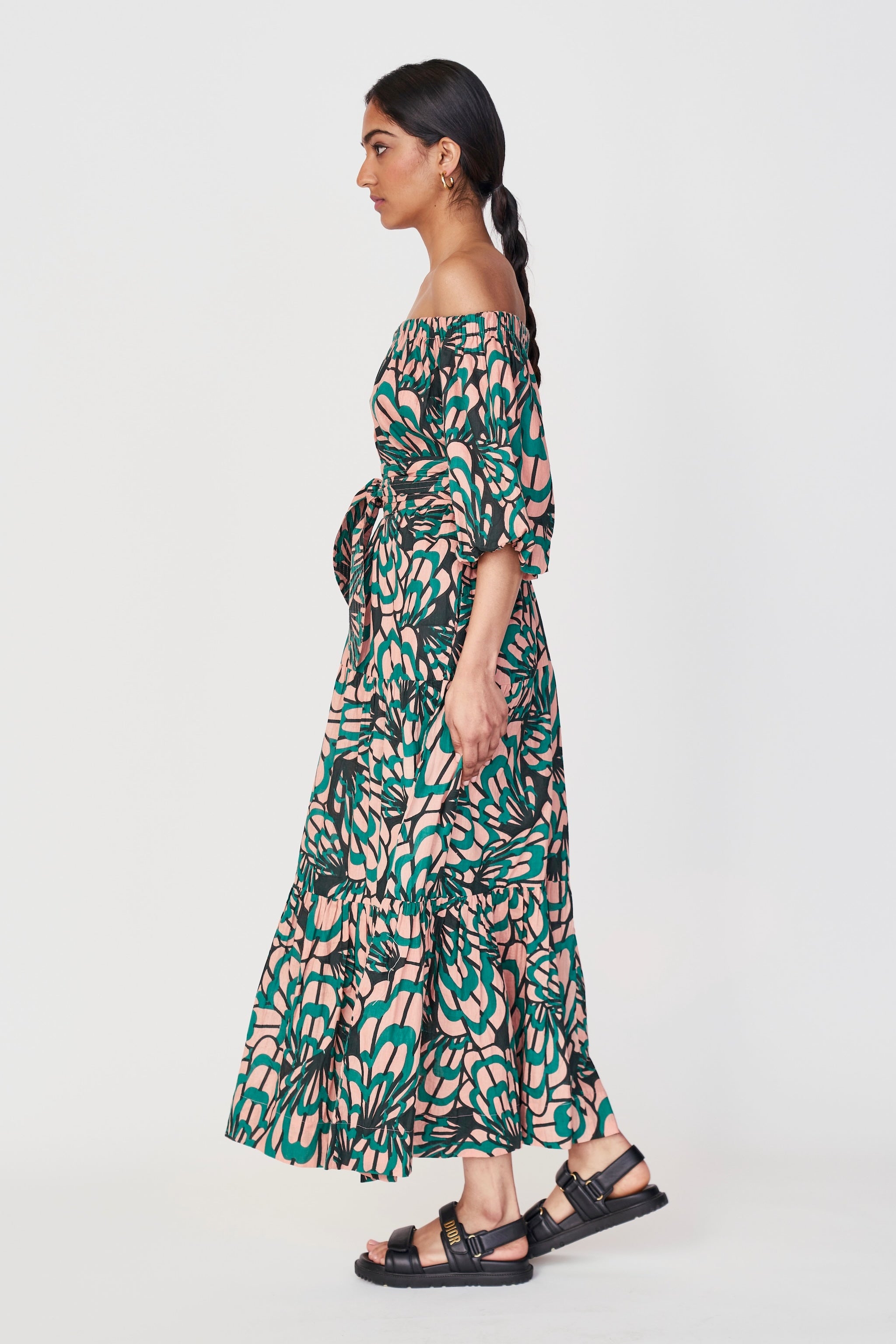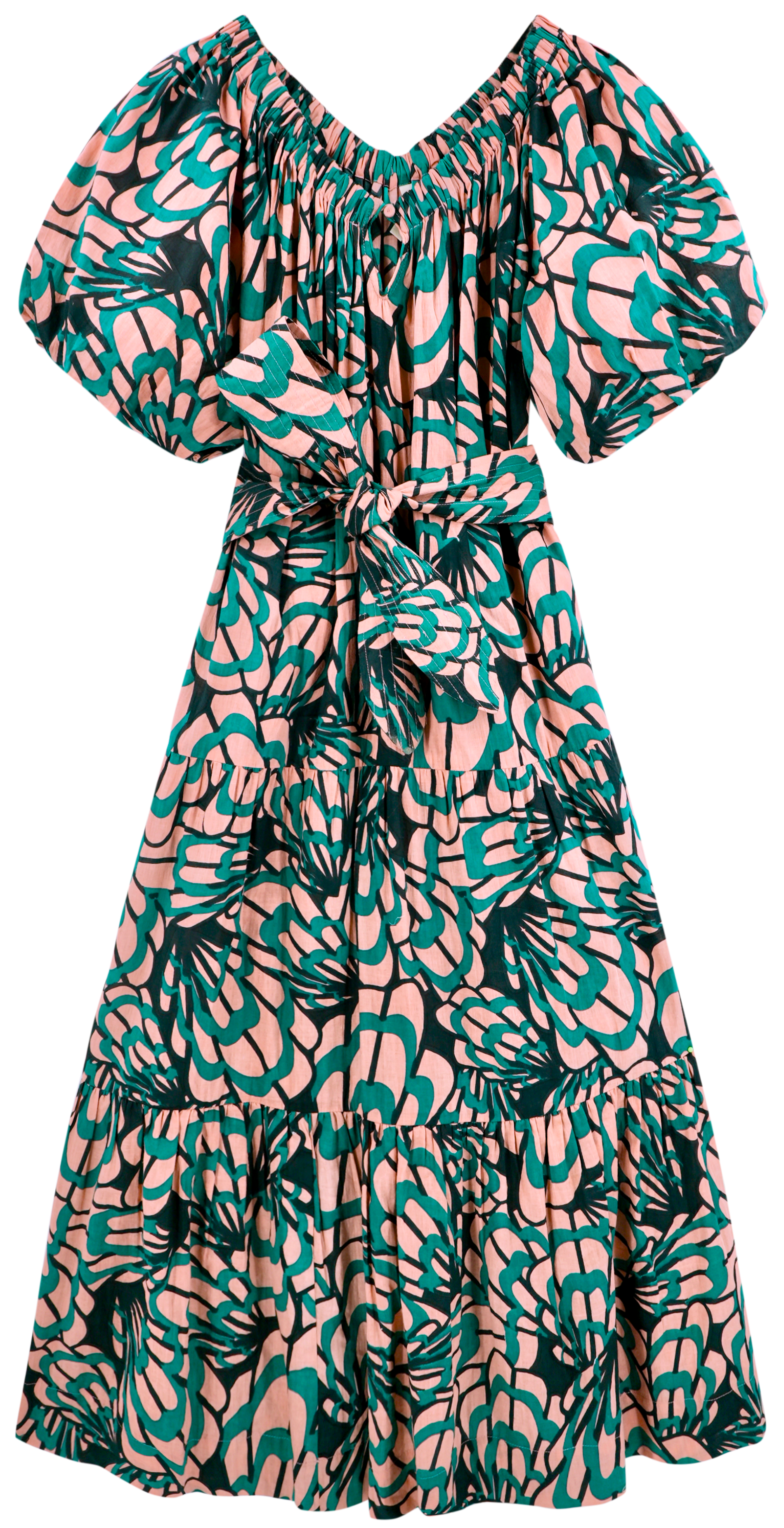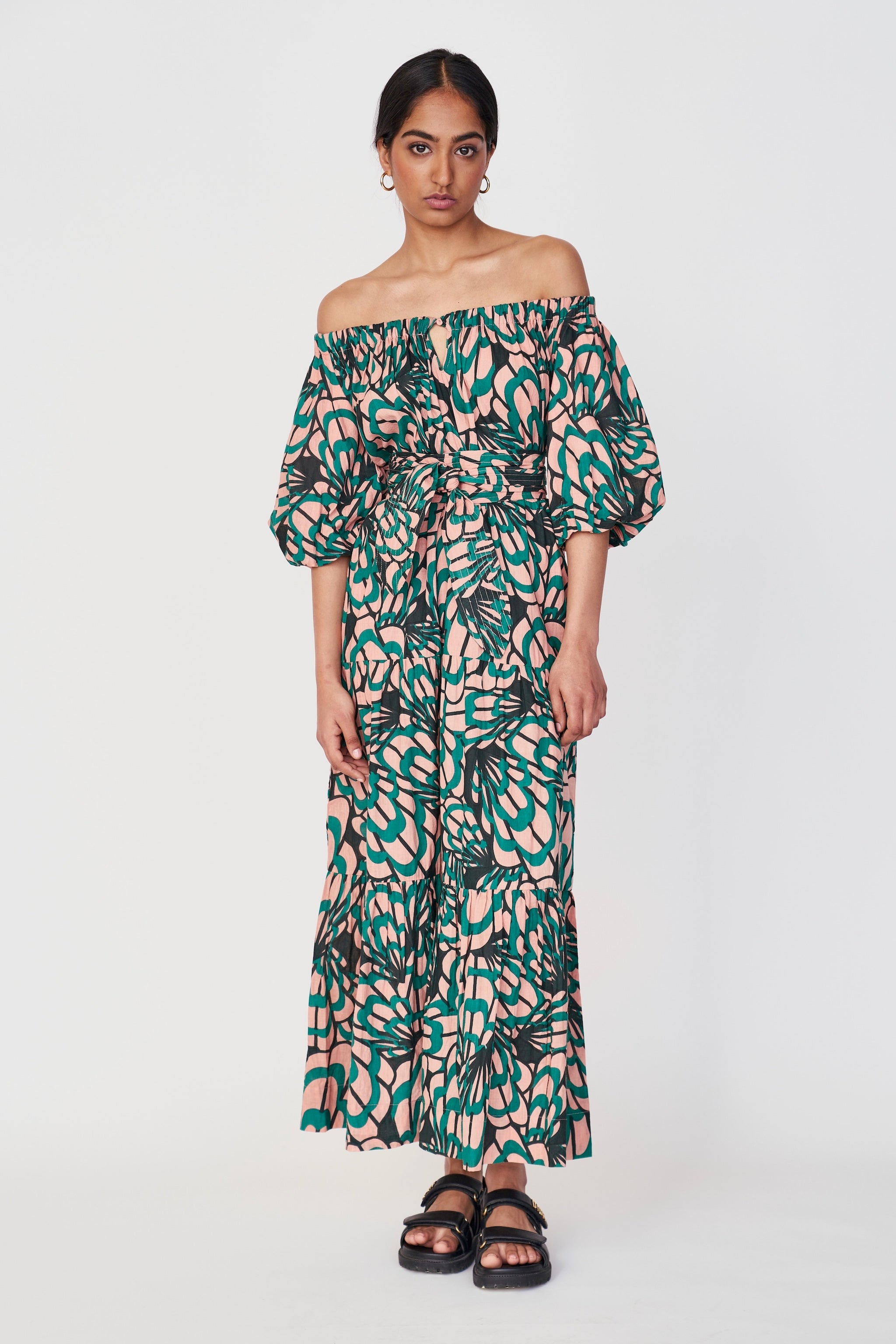 - Voluminous tiered skirt