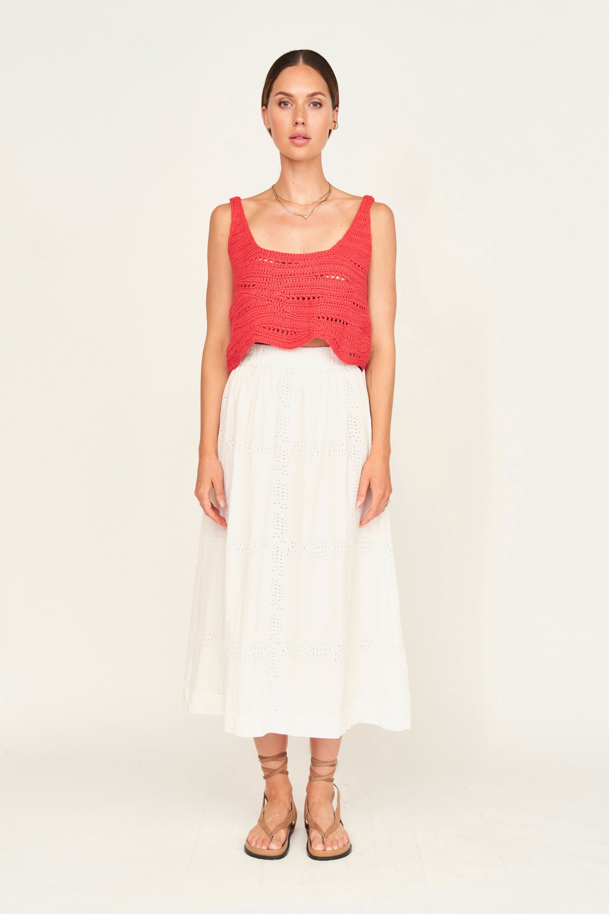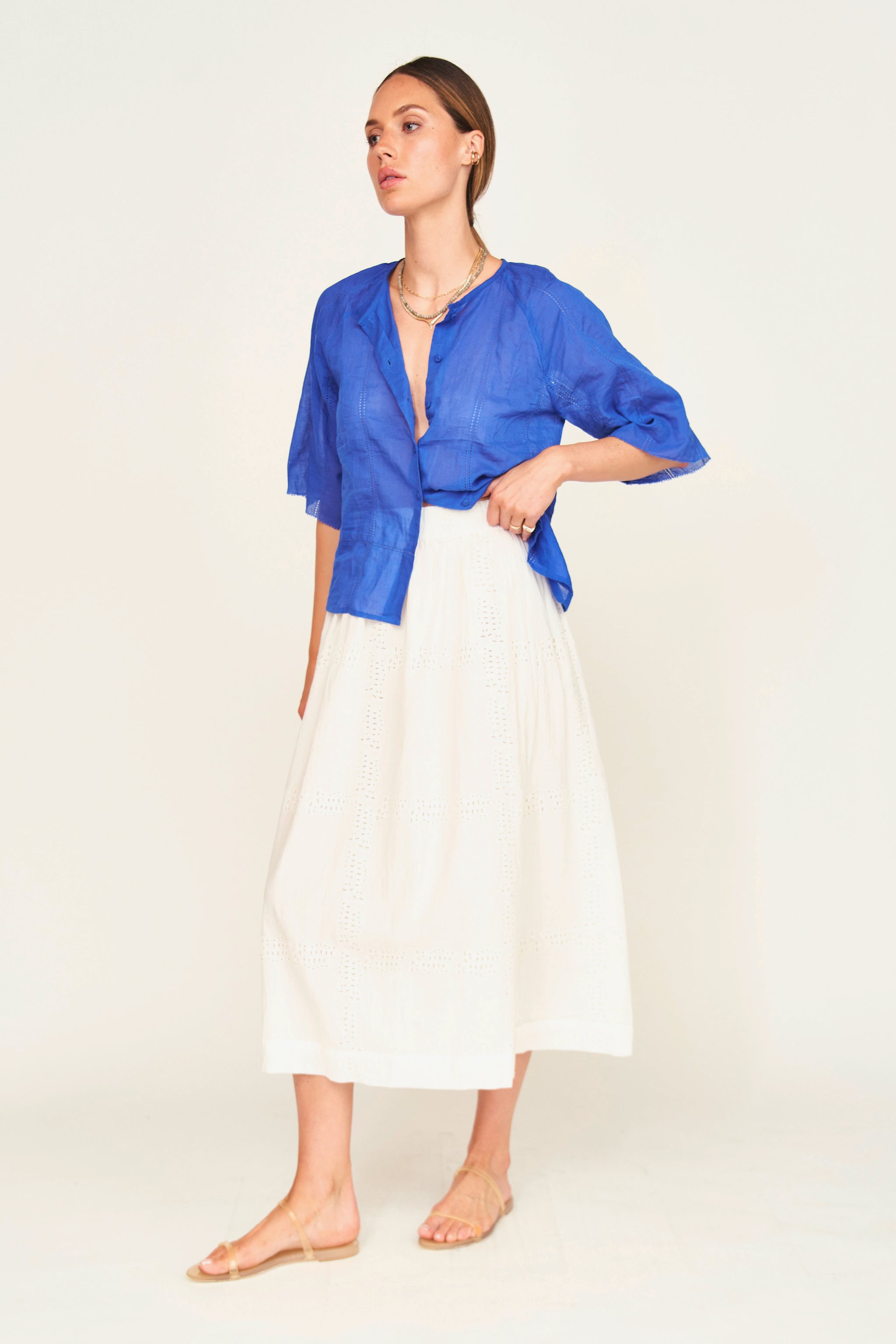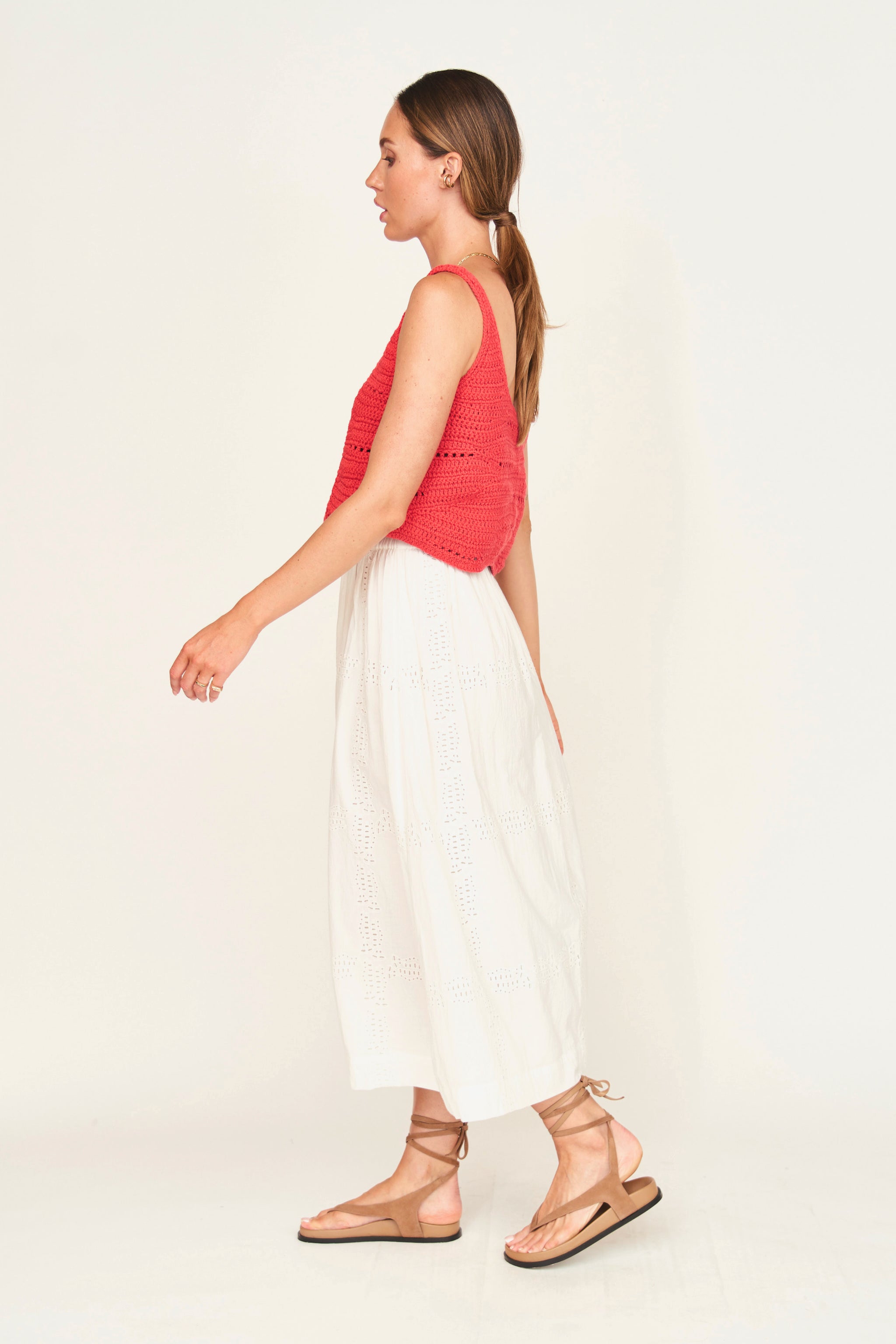 - Made of a light, soft cotton with fish eyelet detail, and lined in cotton