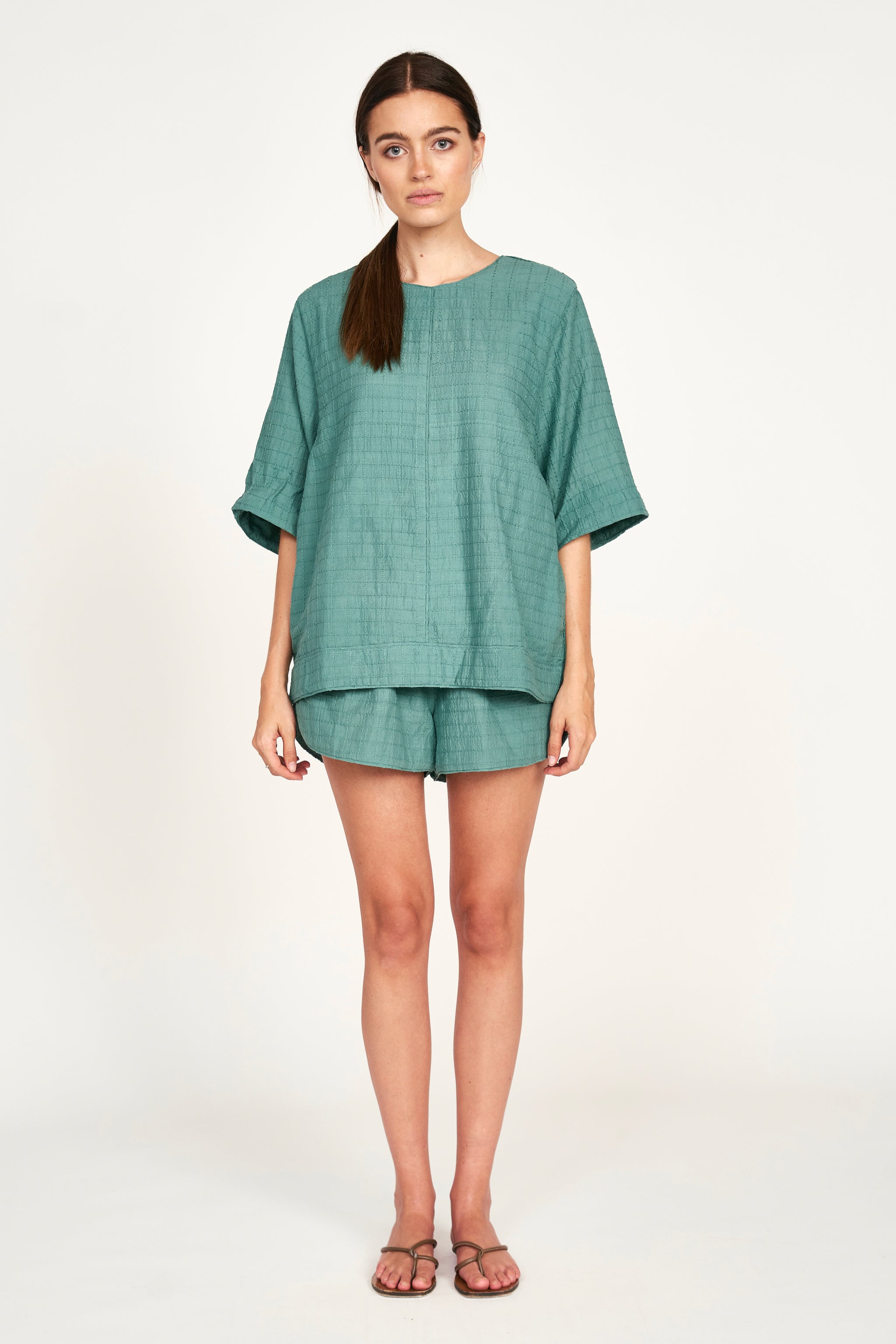 Field Top in Teal Stitch