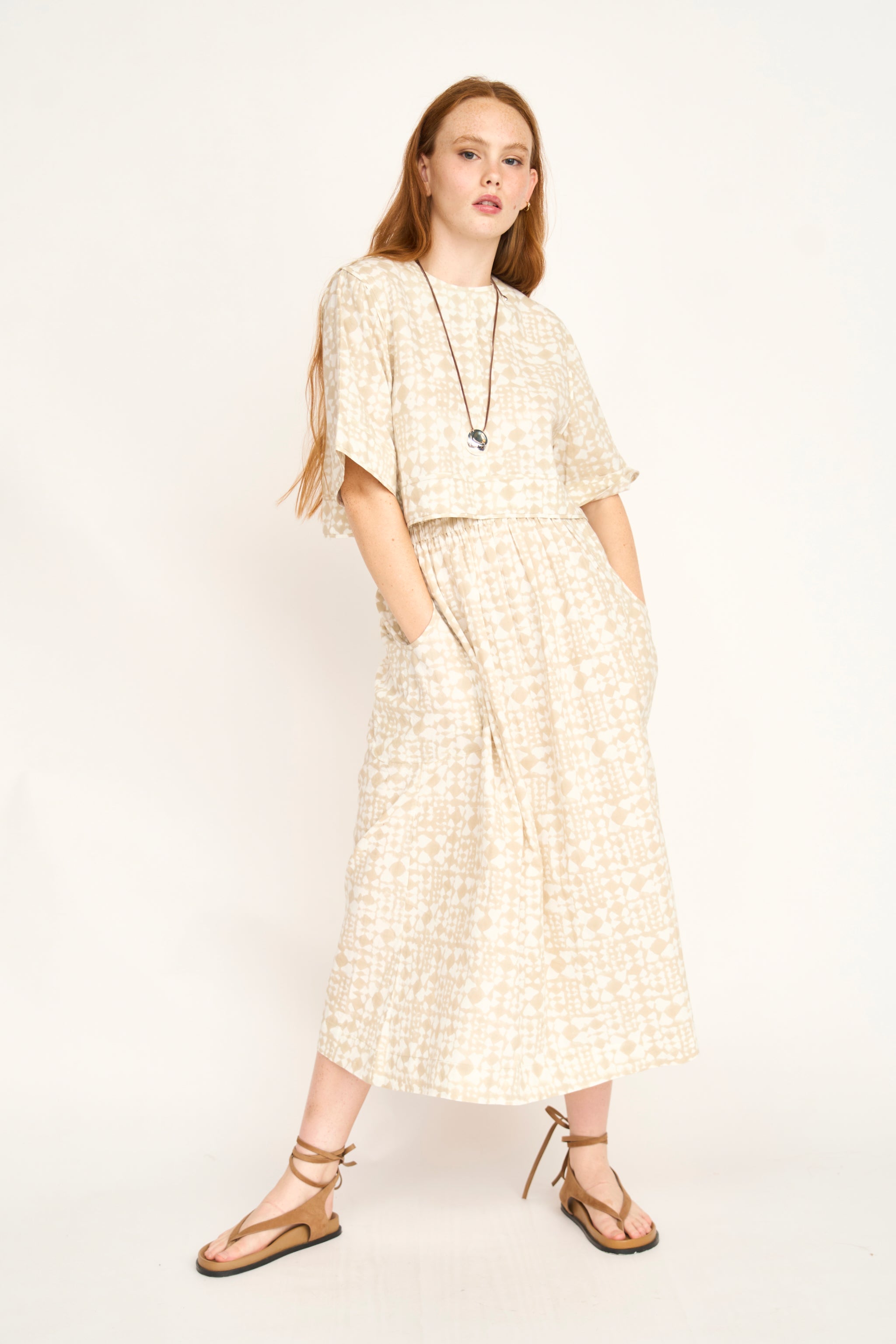 - Gathered, ankle-length skirt with a wide elastic waistband