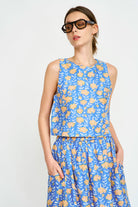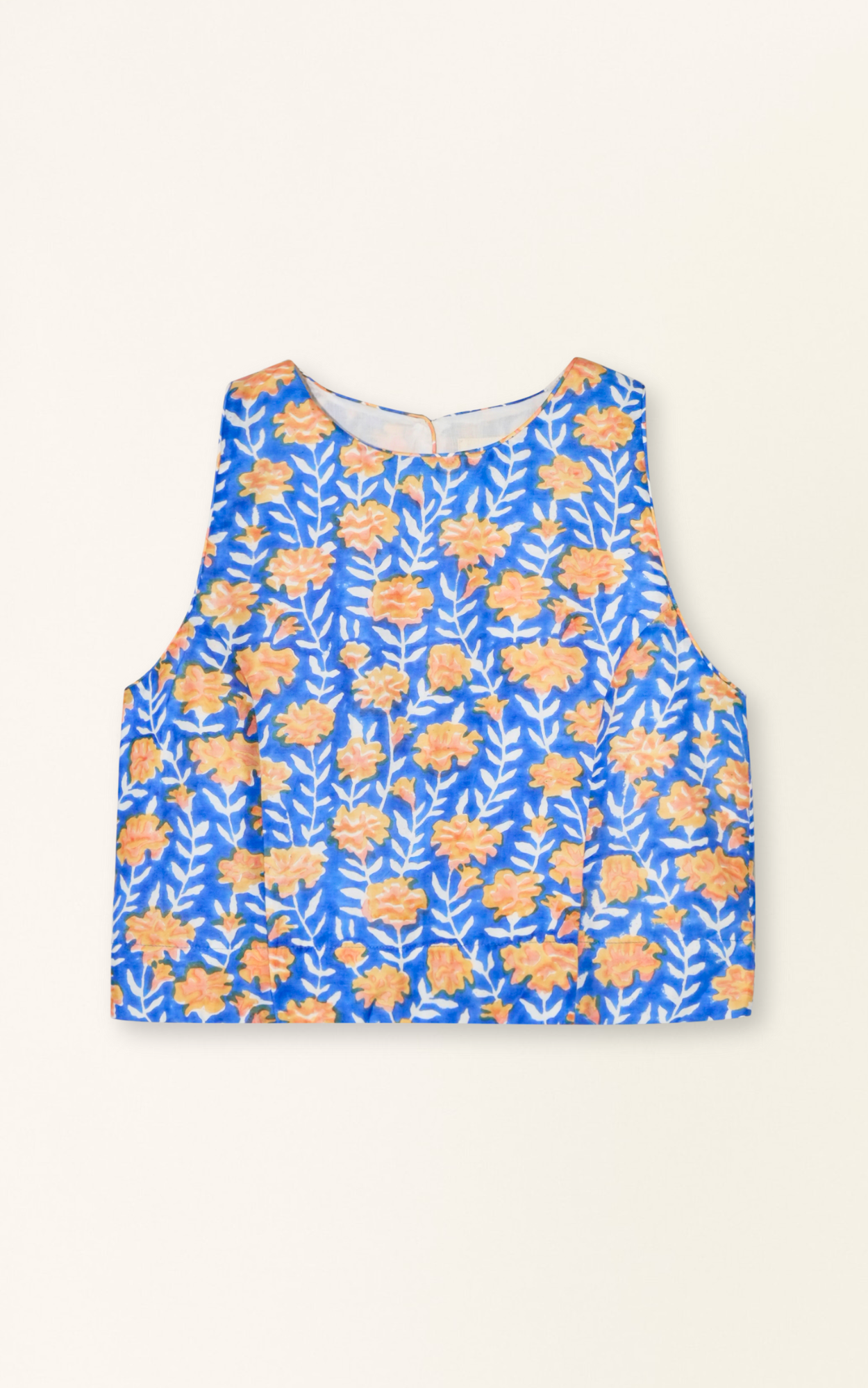 - Cropped tank with high, rounded neckline