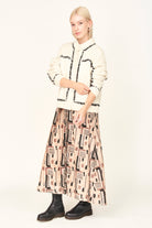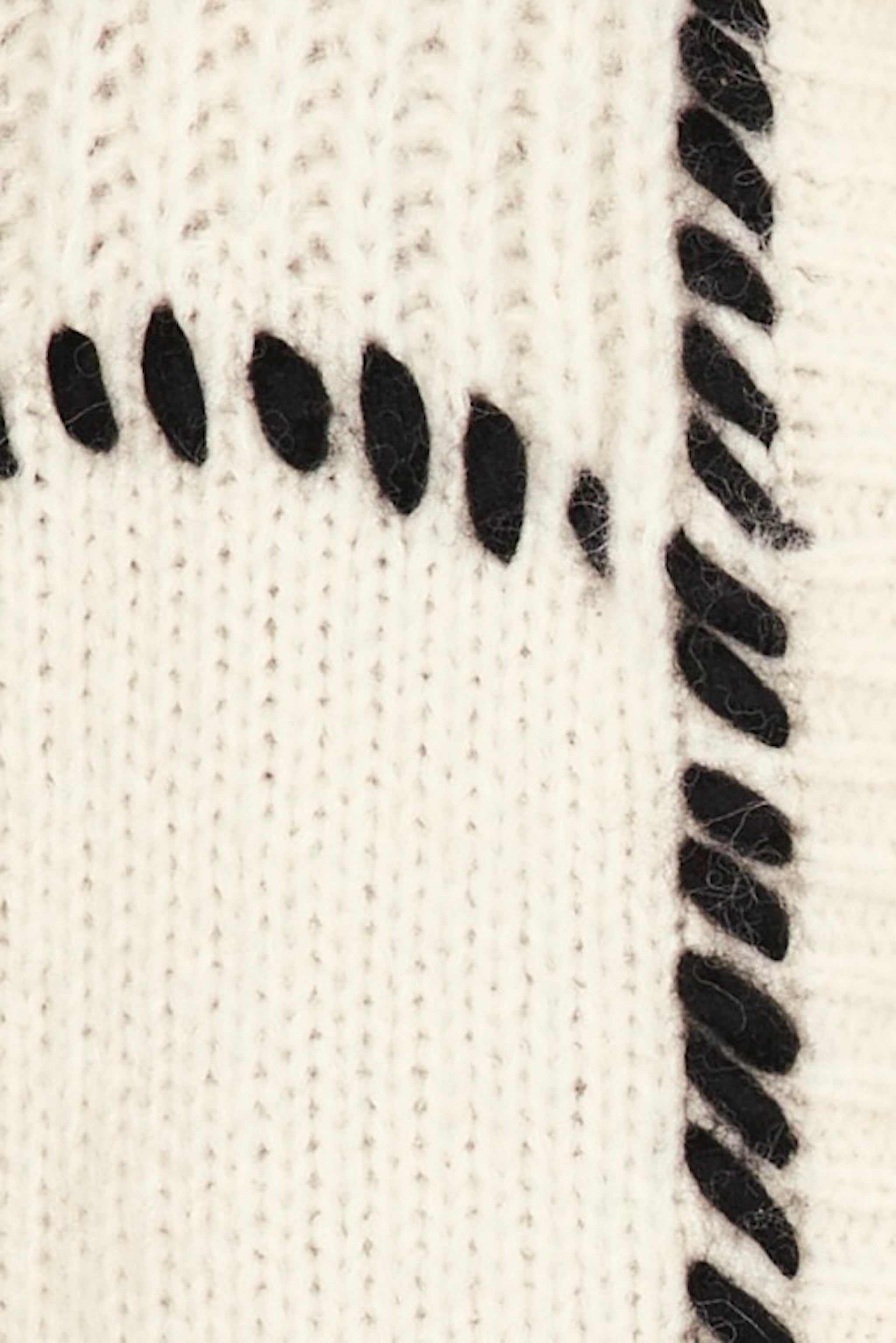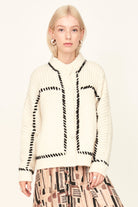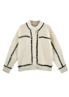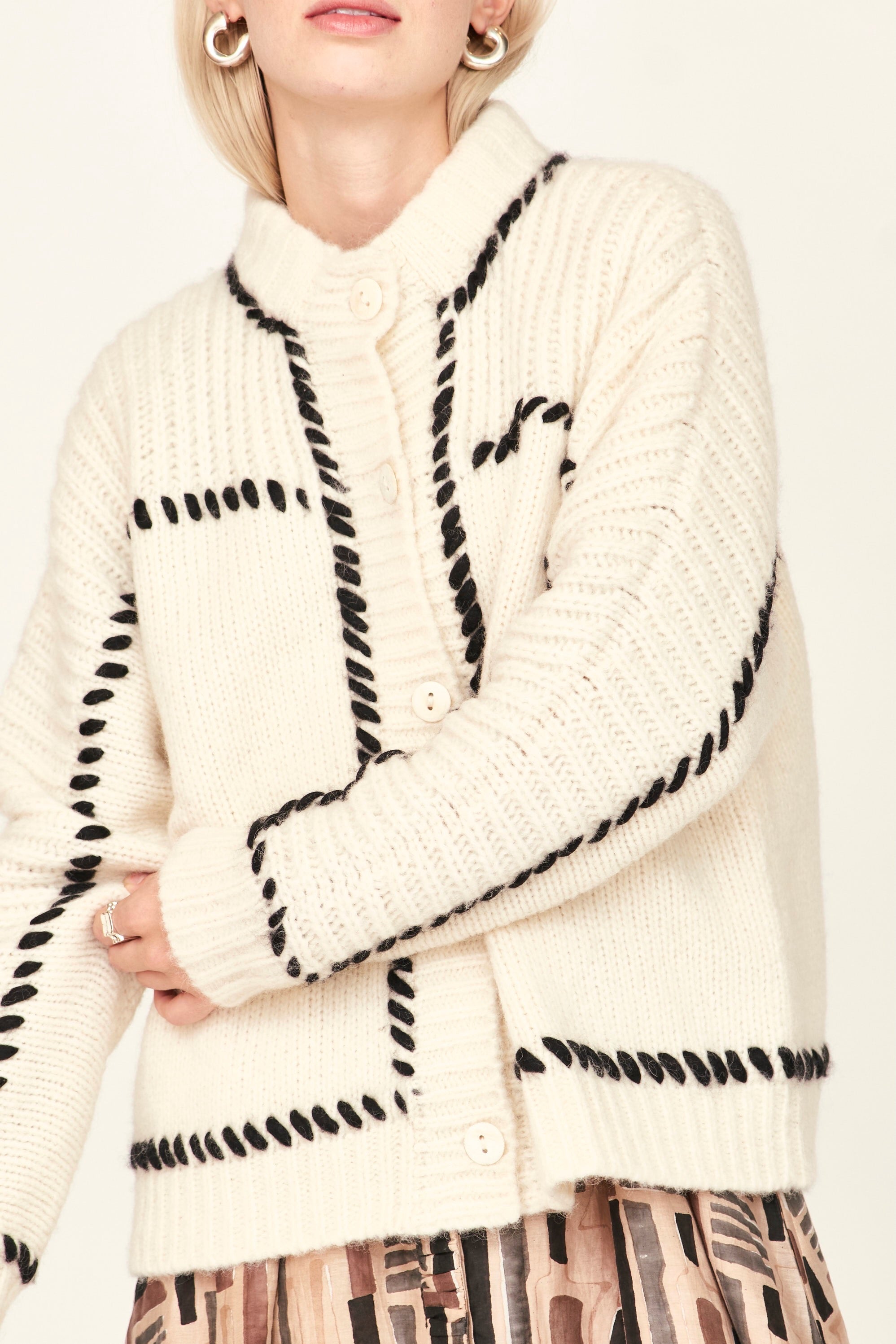 - Heavier weight winter cardigan with contrast hand embroidered whipstitch