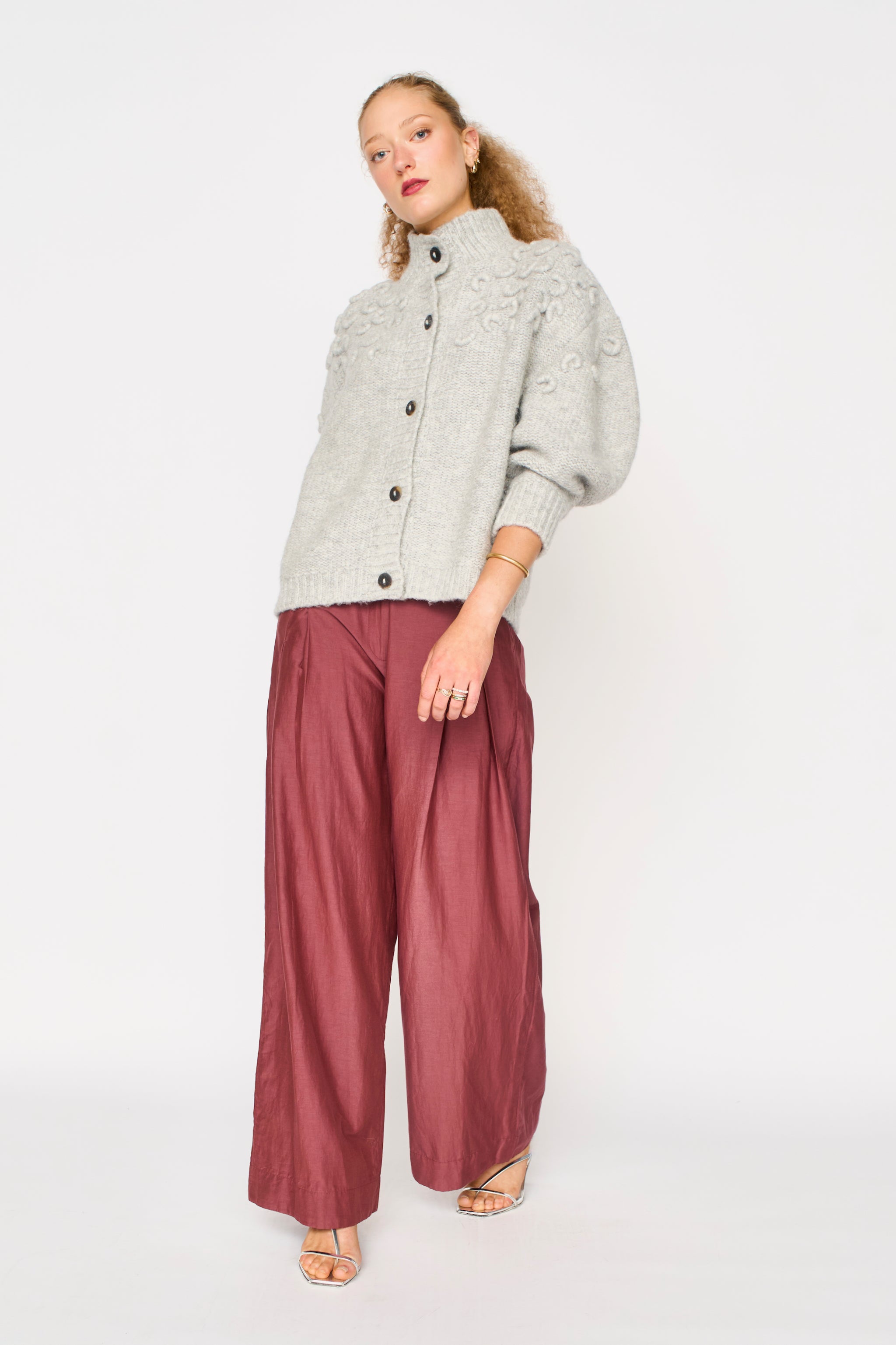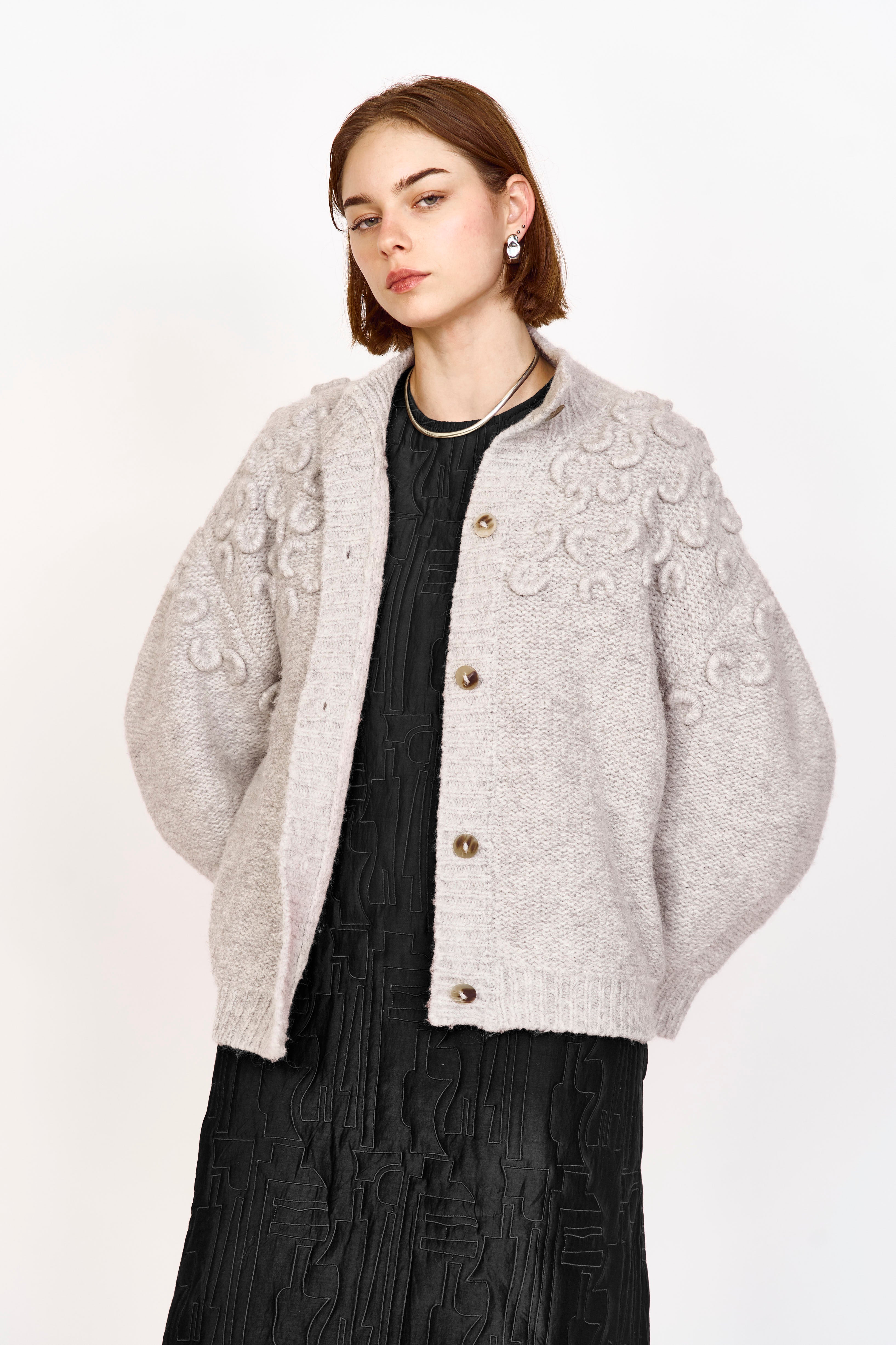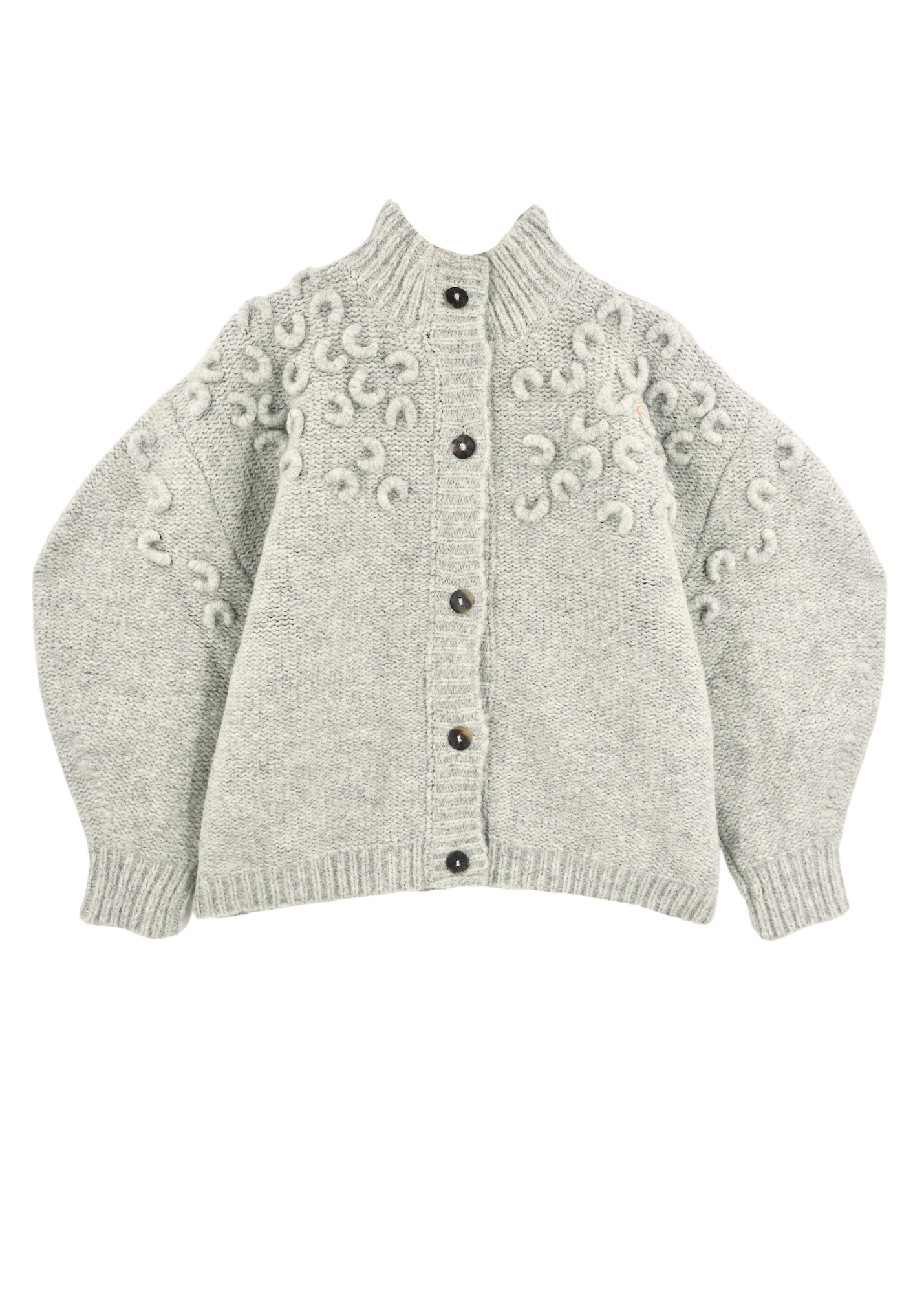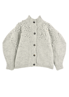 - Heavier weight winter cardigan with hand embroidered embellishments on yoke