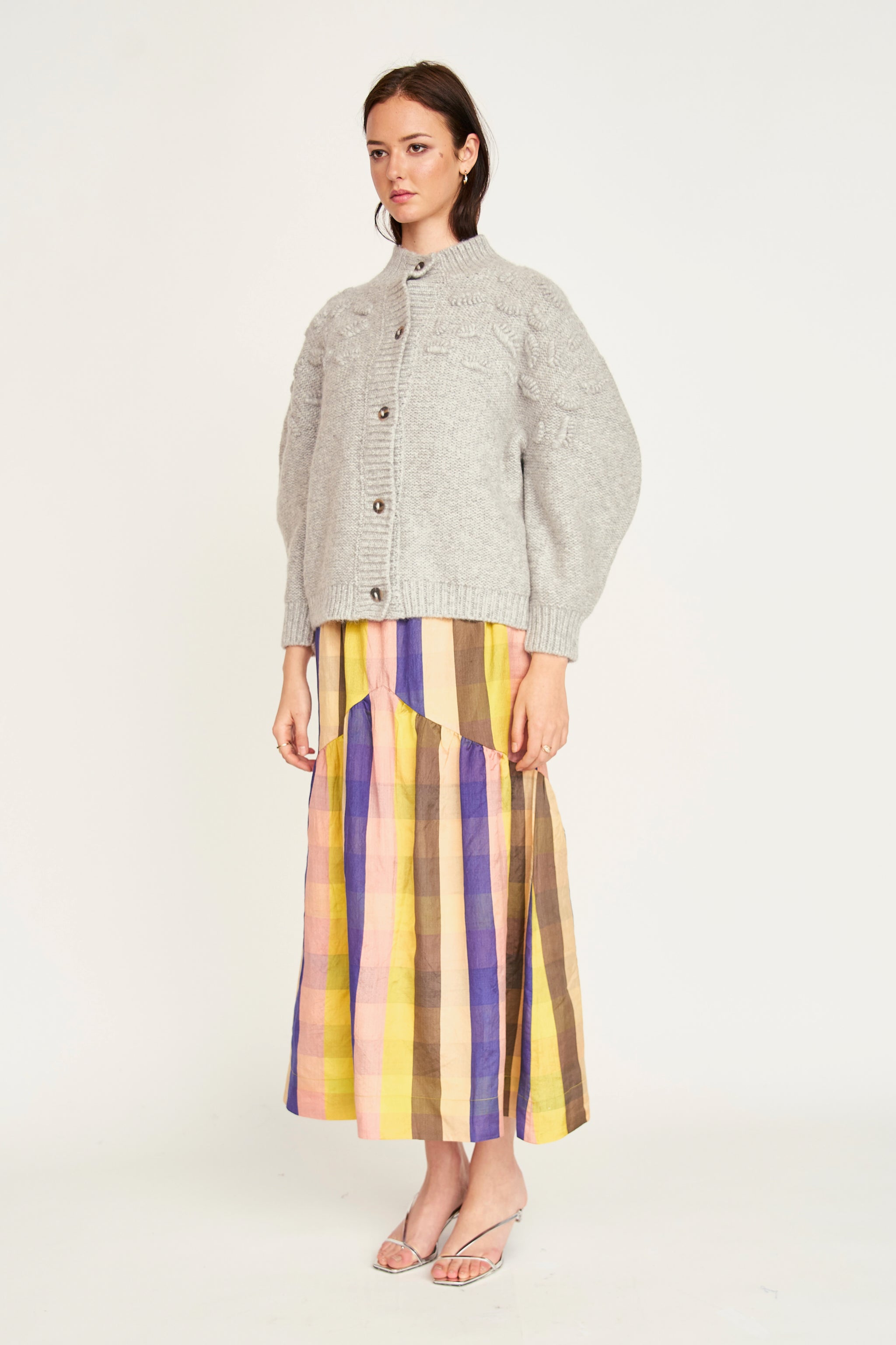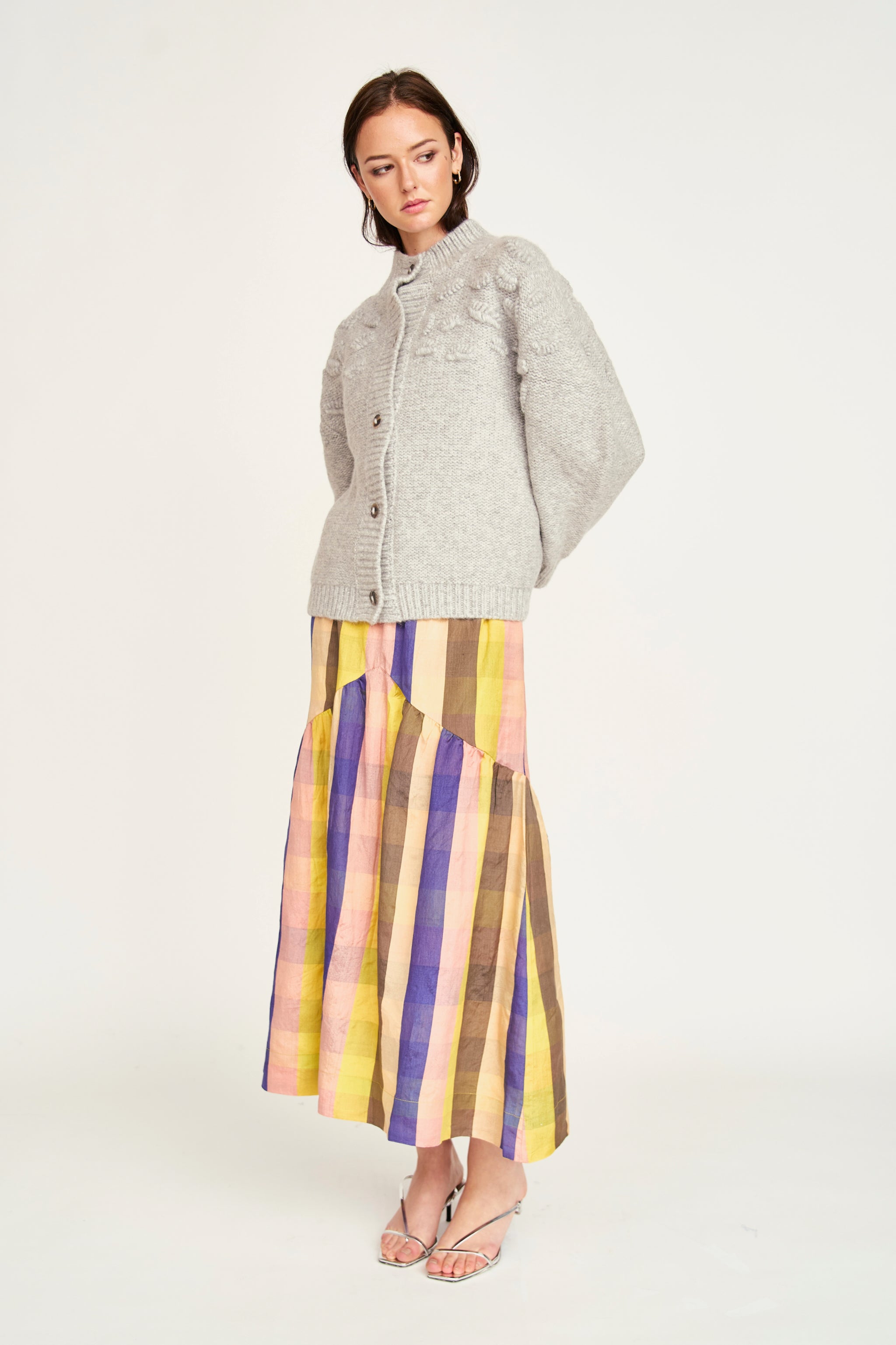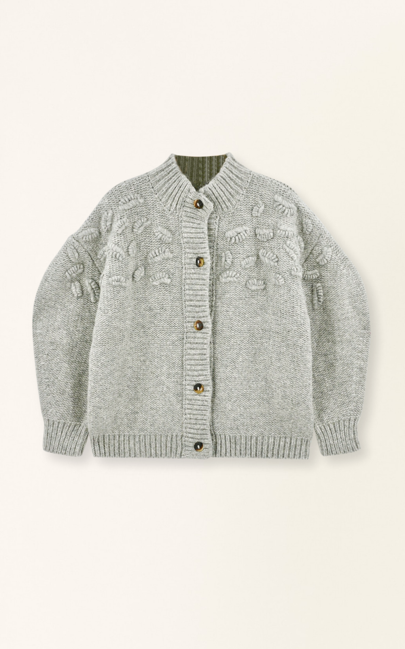 - Heavier weight winter cardigan with hand embroidered shell embellishments
