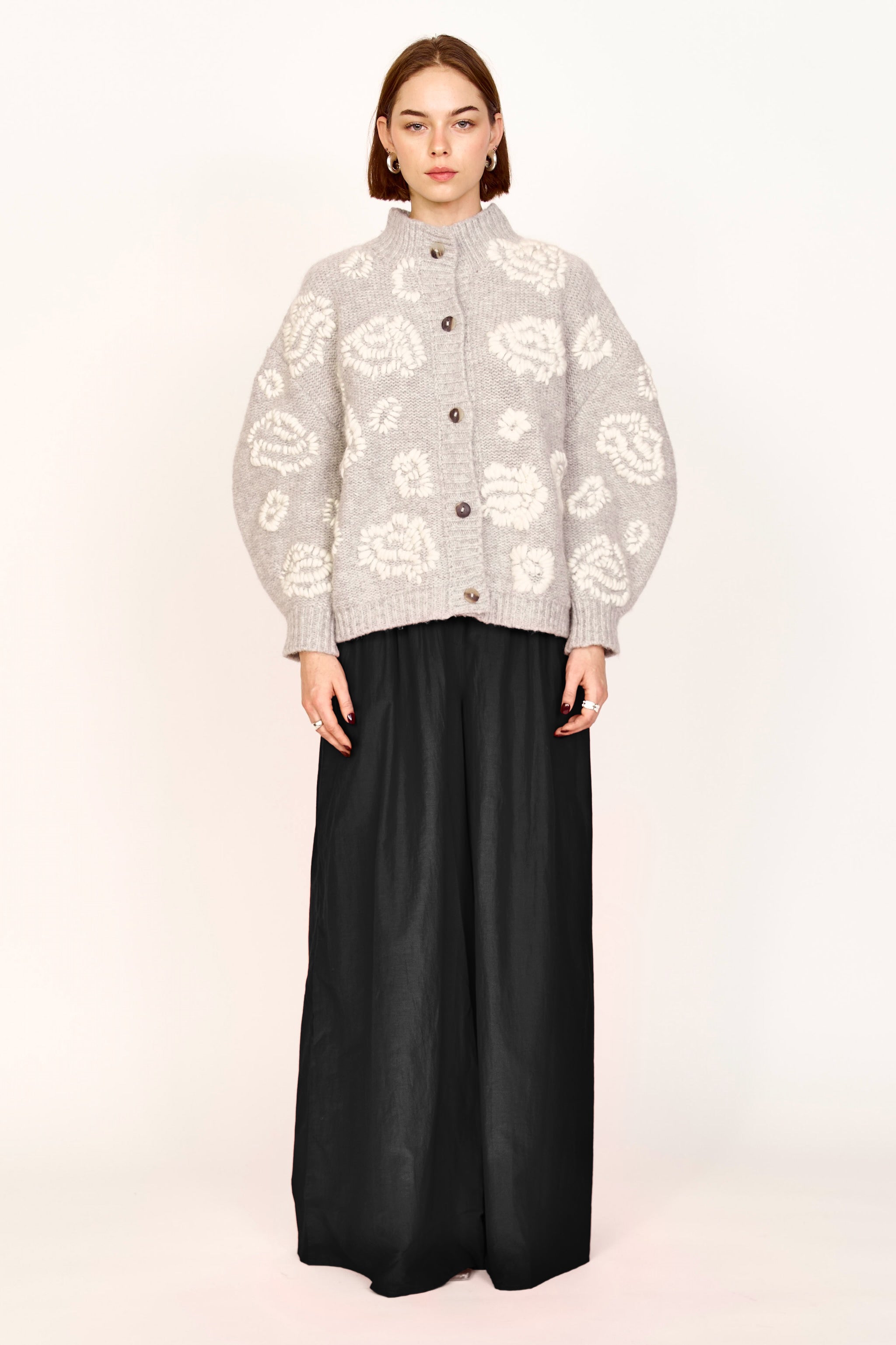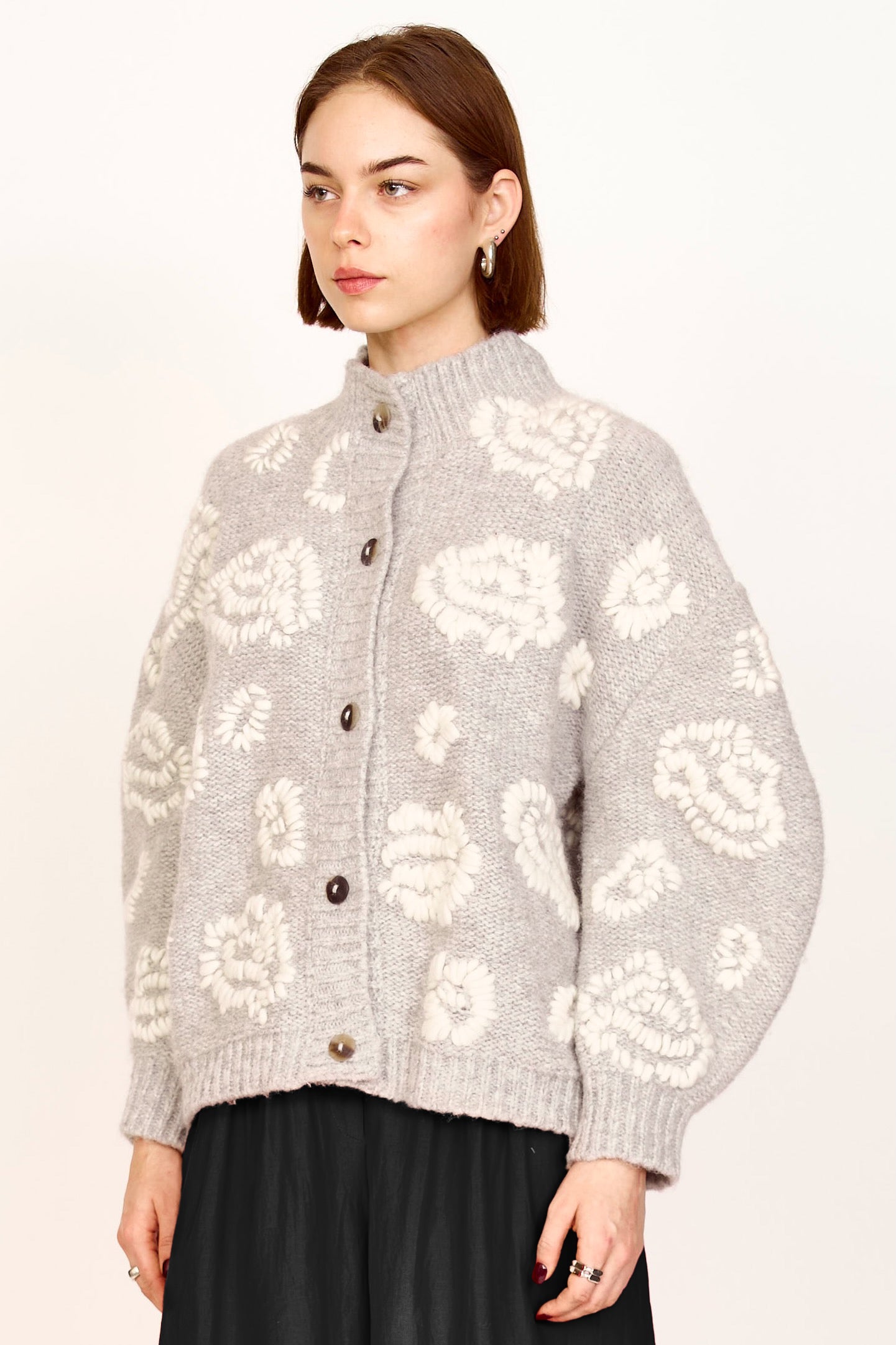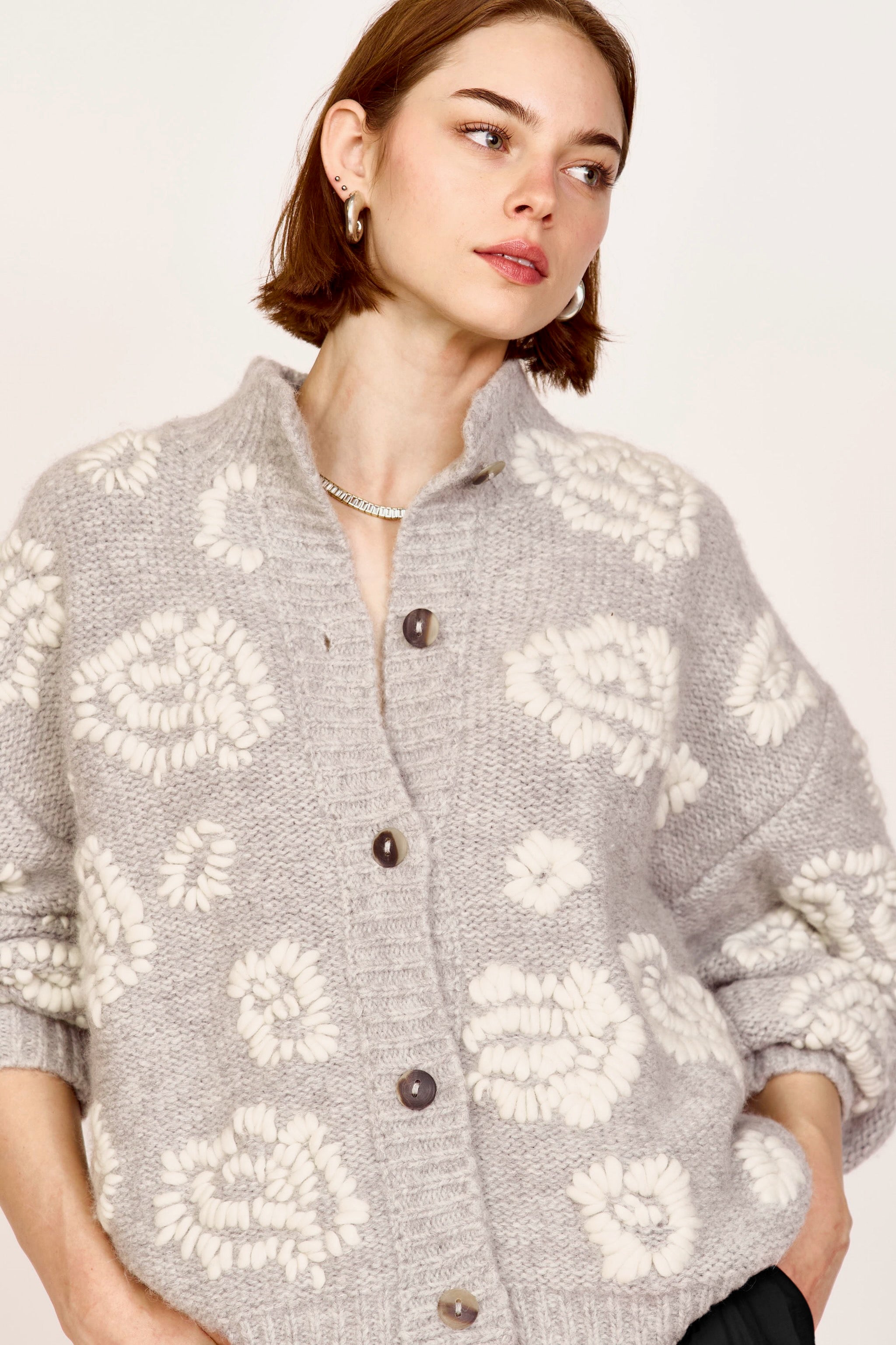 Cusco Waterlily Cardigan in Dove Grey/Ivory