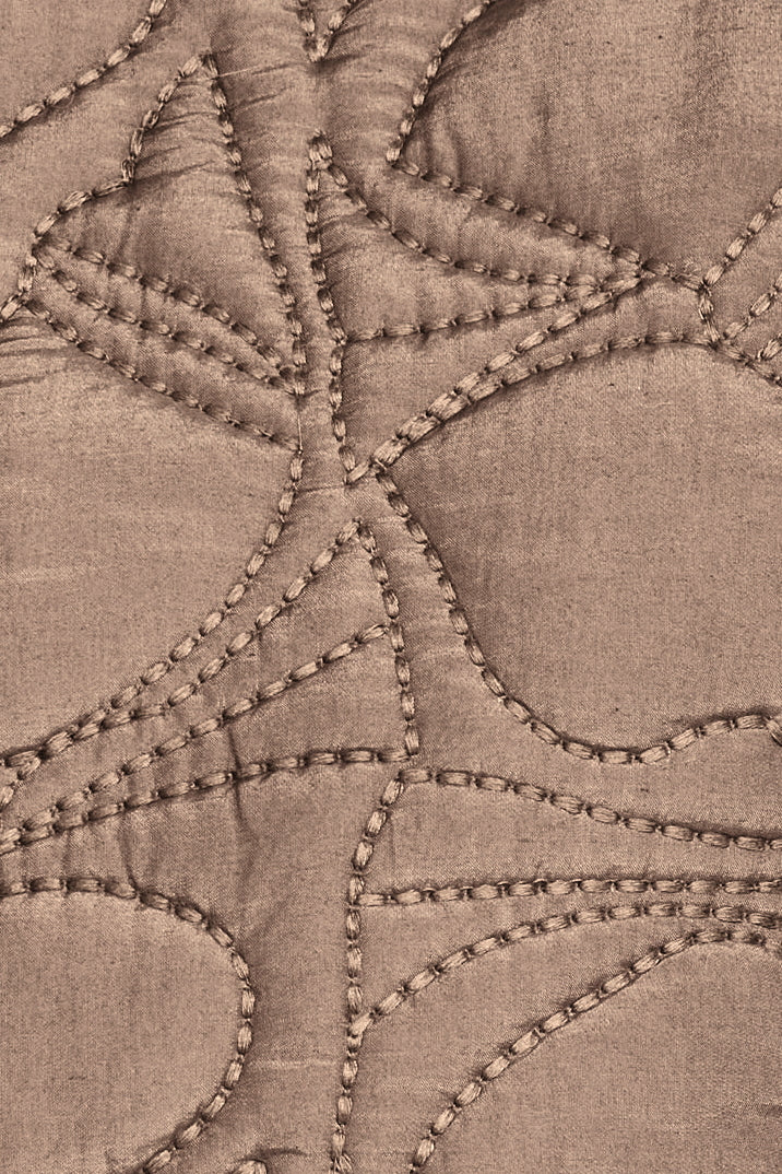 - Running stitch detail around unique abstract quilting motif