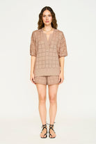 Adelaide Pointelle Knit Top in Mocha
