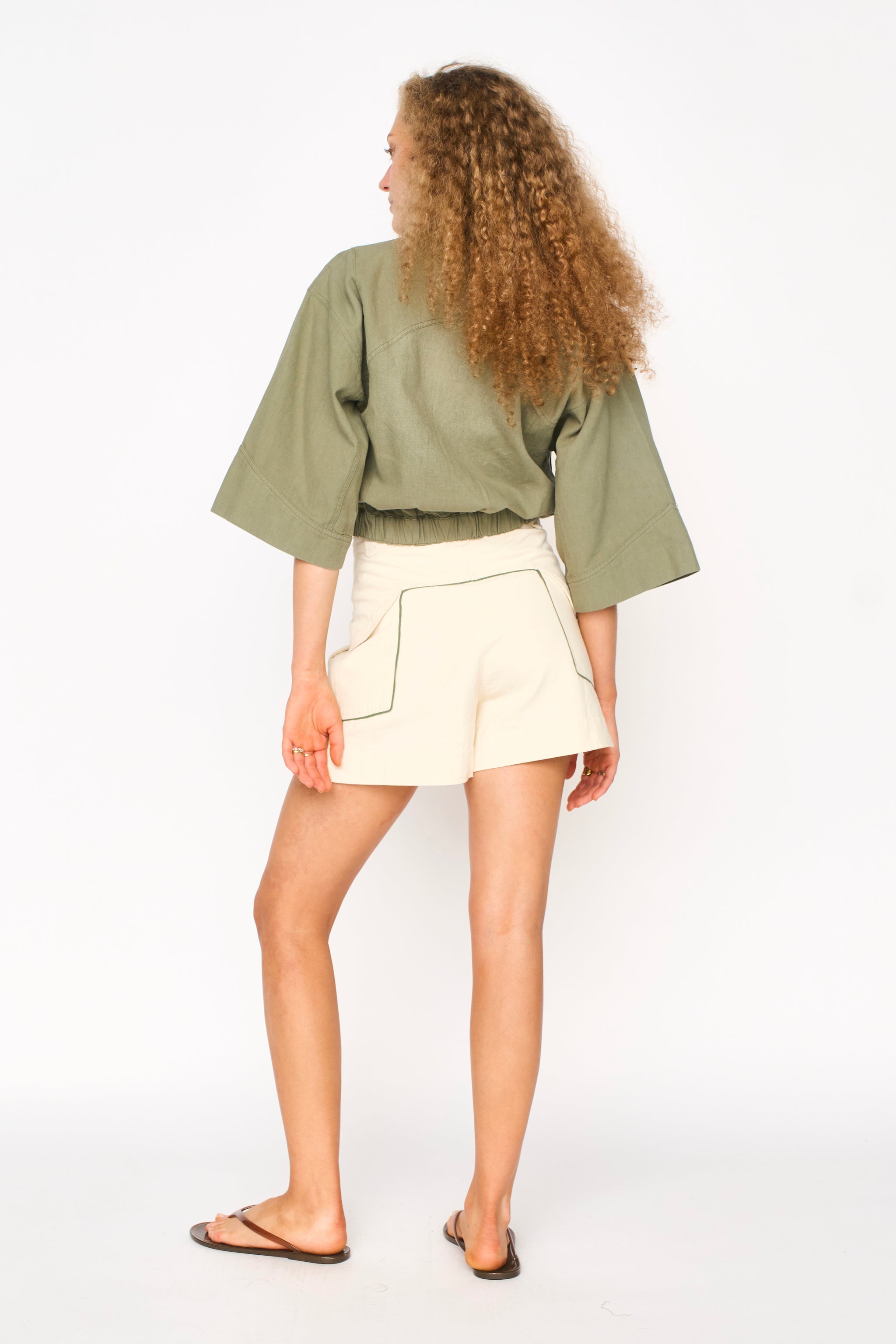 - Seaming detail at front and back yoke
