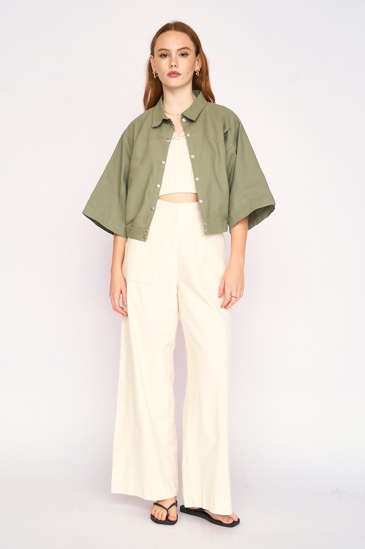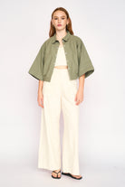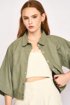 - Cropped, snap-front, cropped canvas jacket