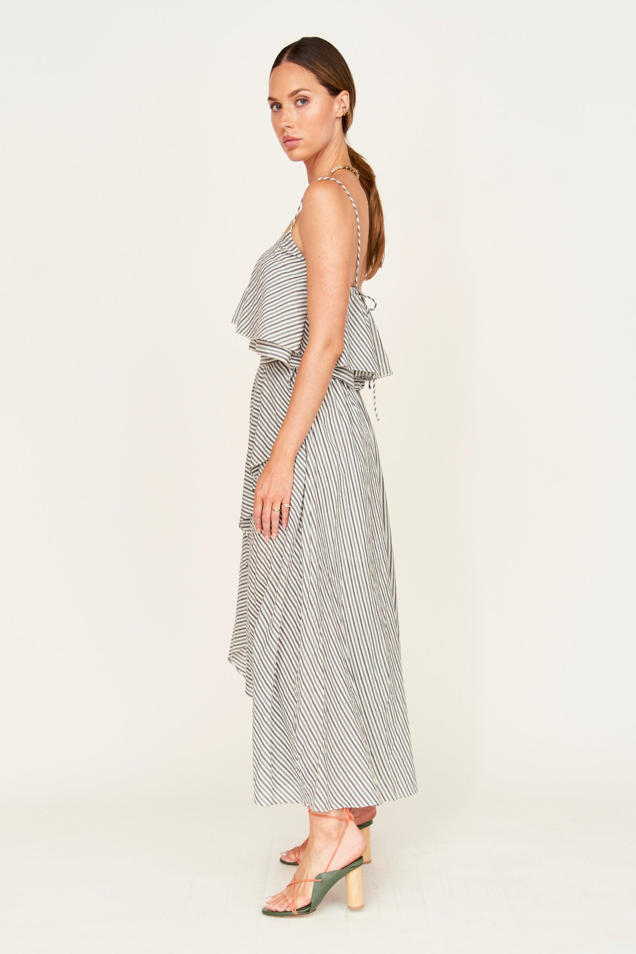 Clare Ruffle Top in Dune Stripe