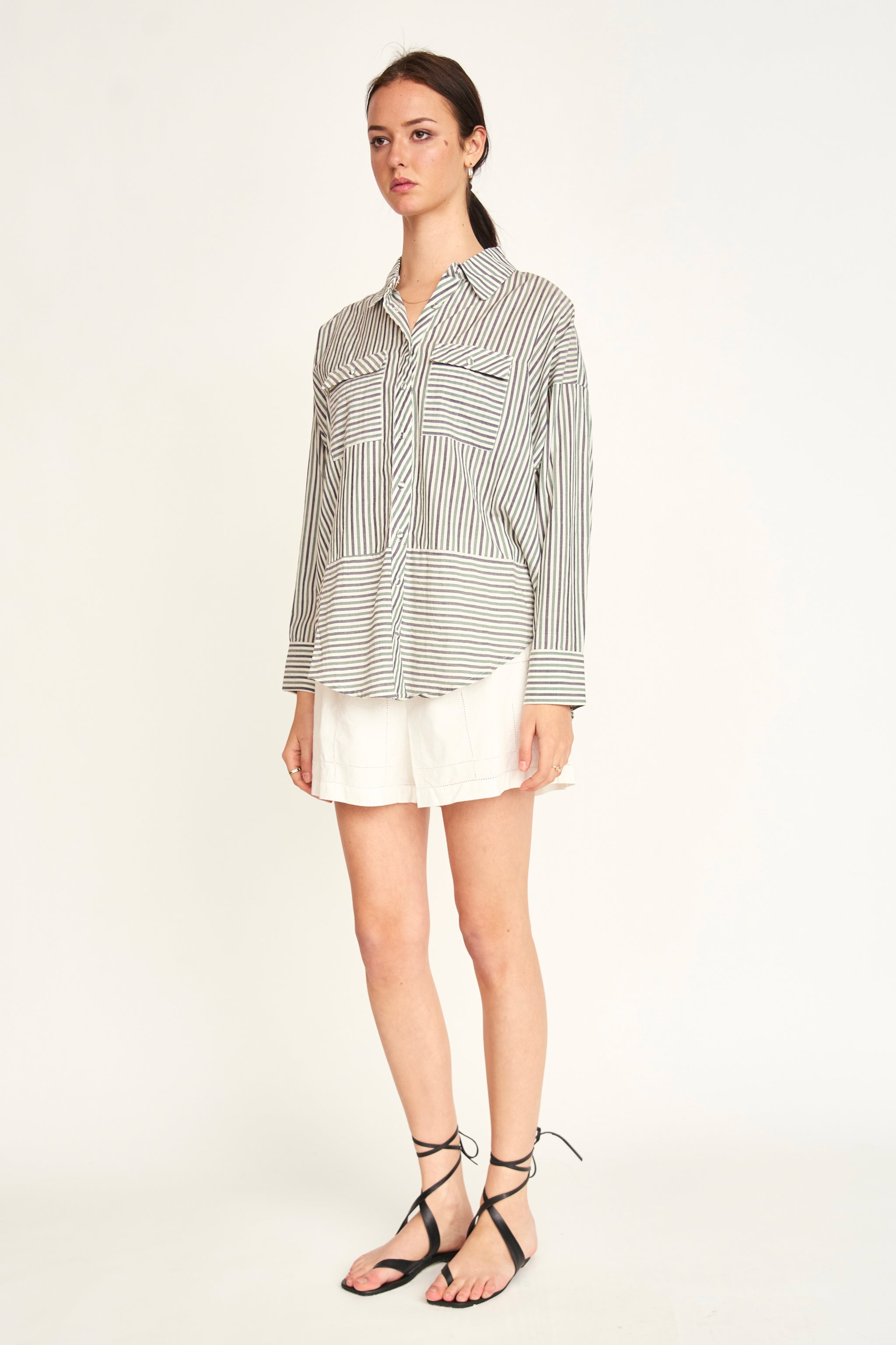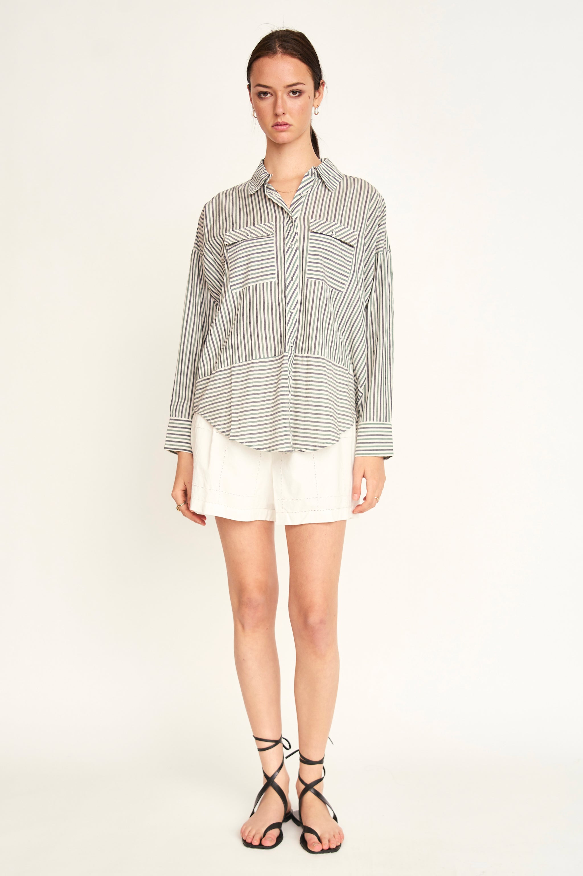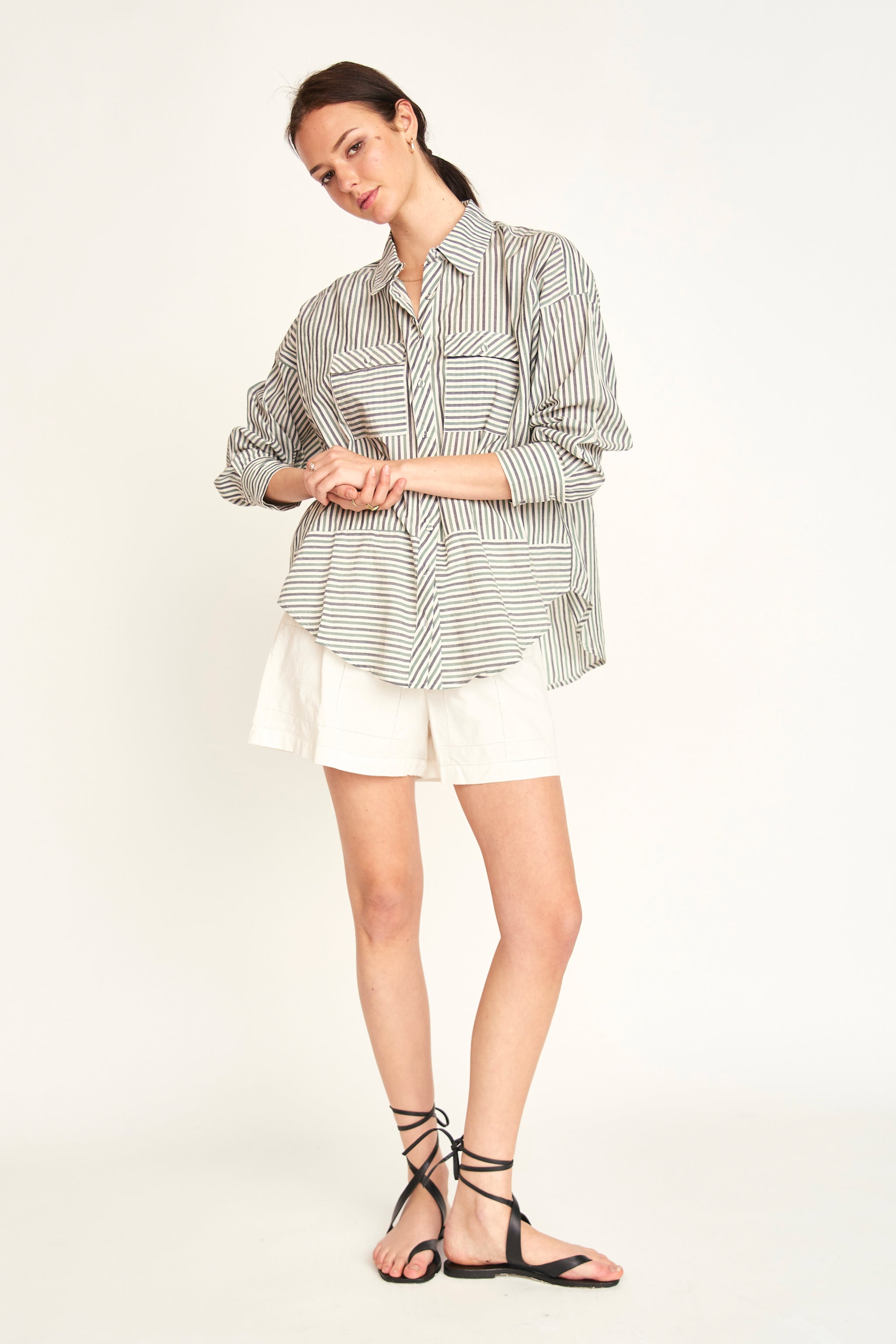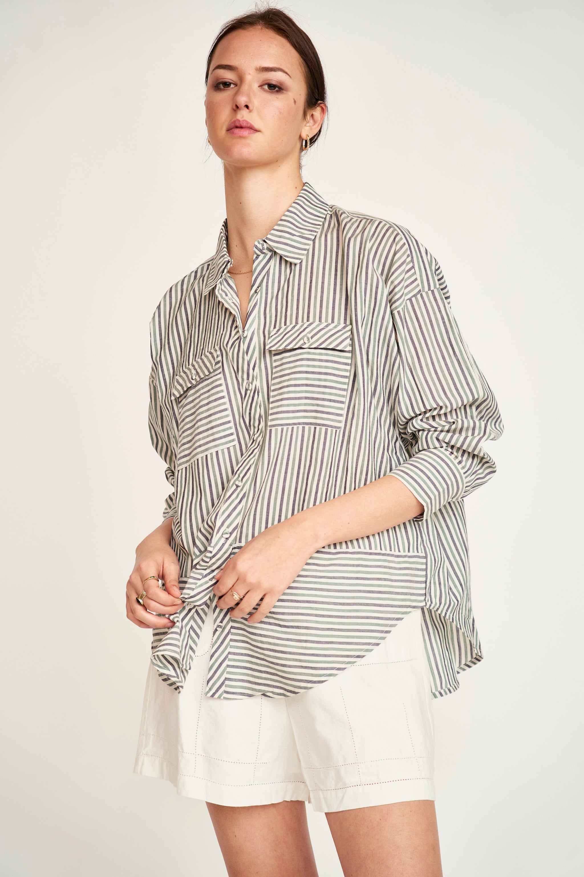 - Signature, oversized button-up cotton/linen shirt