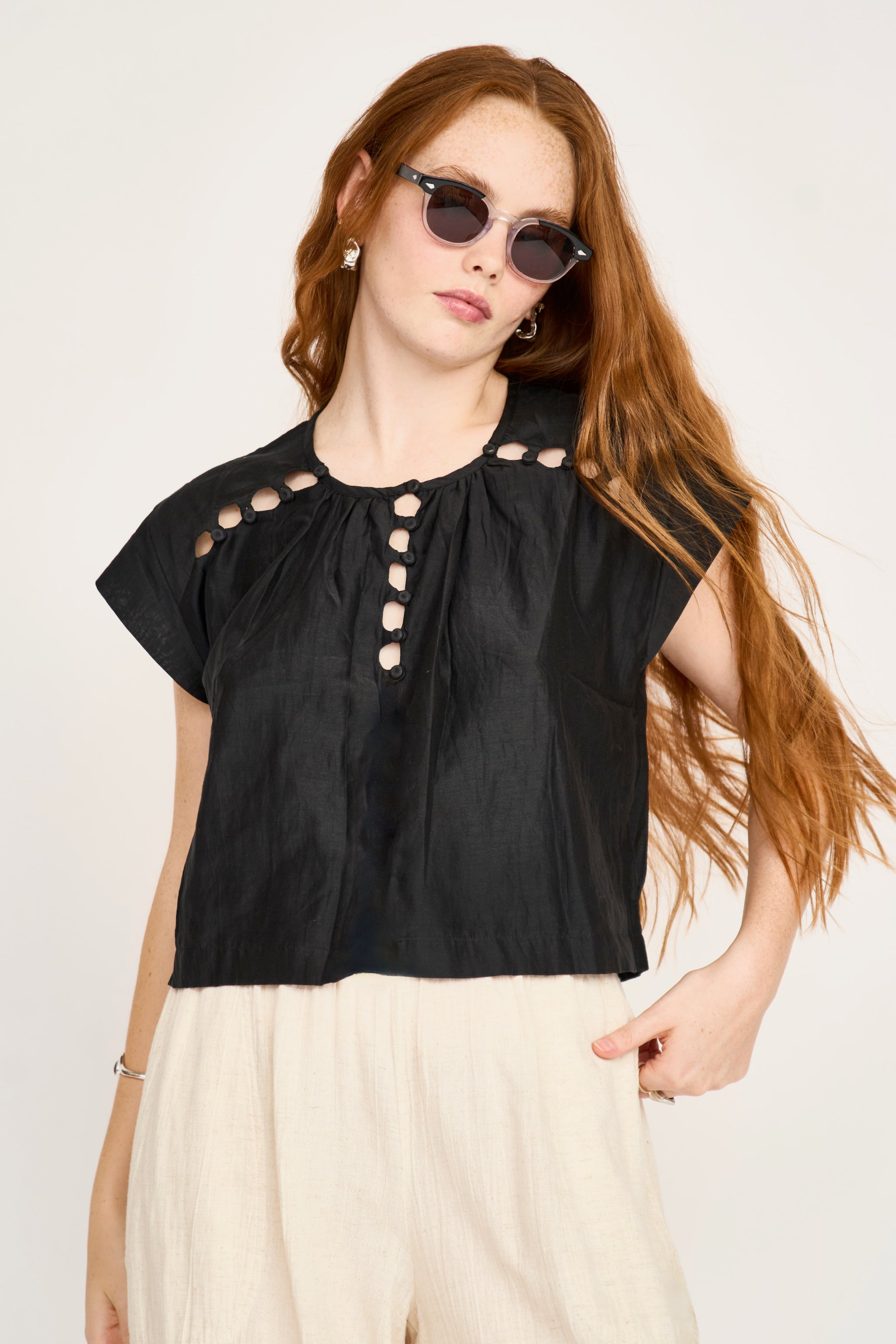 - Cap-sleeve cotton top