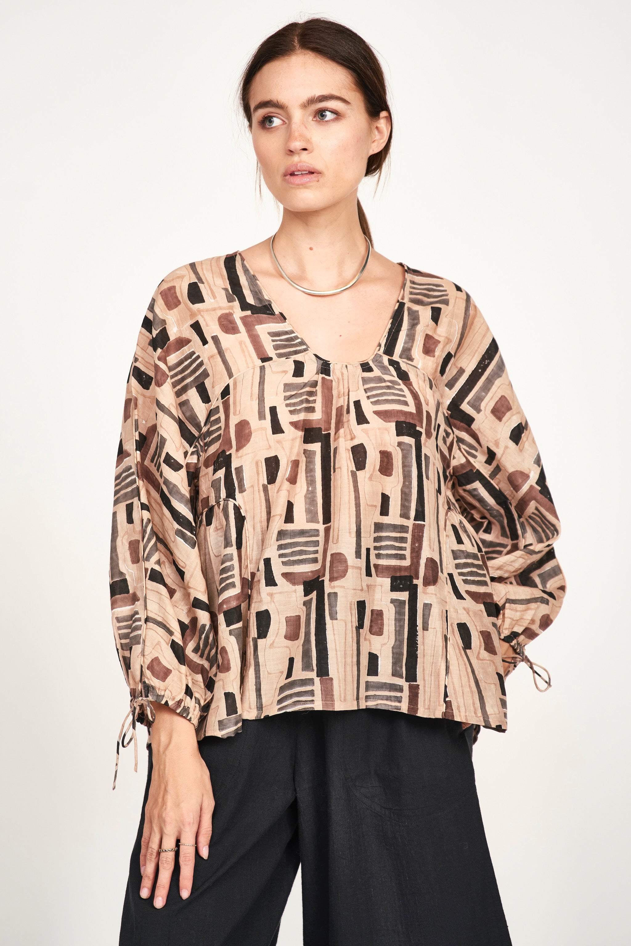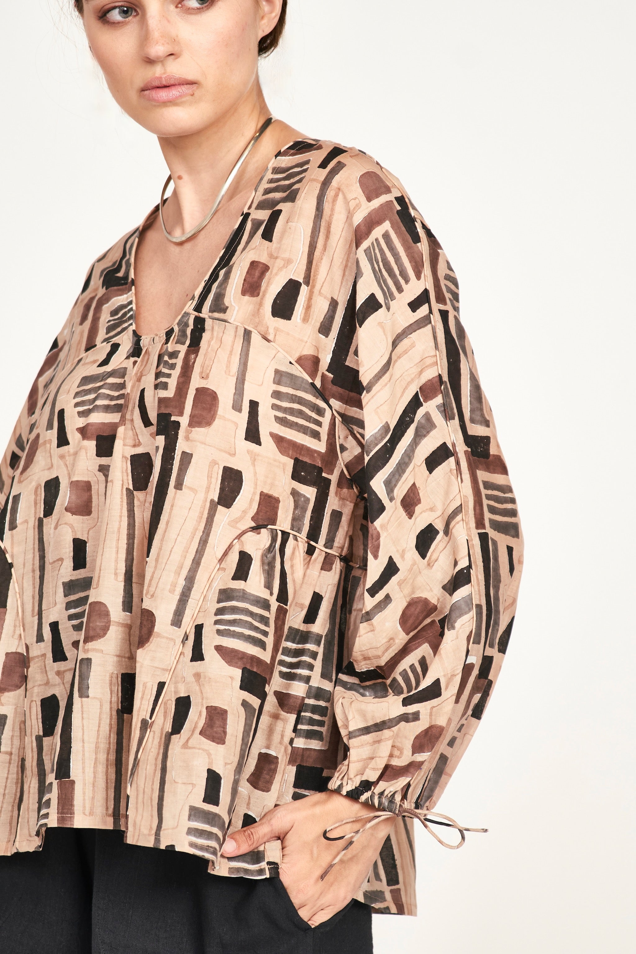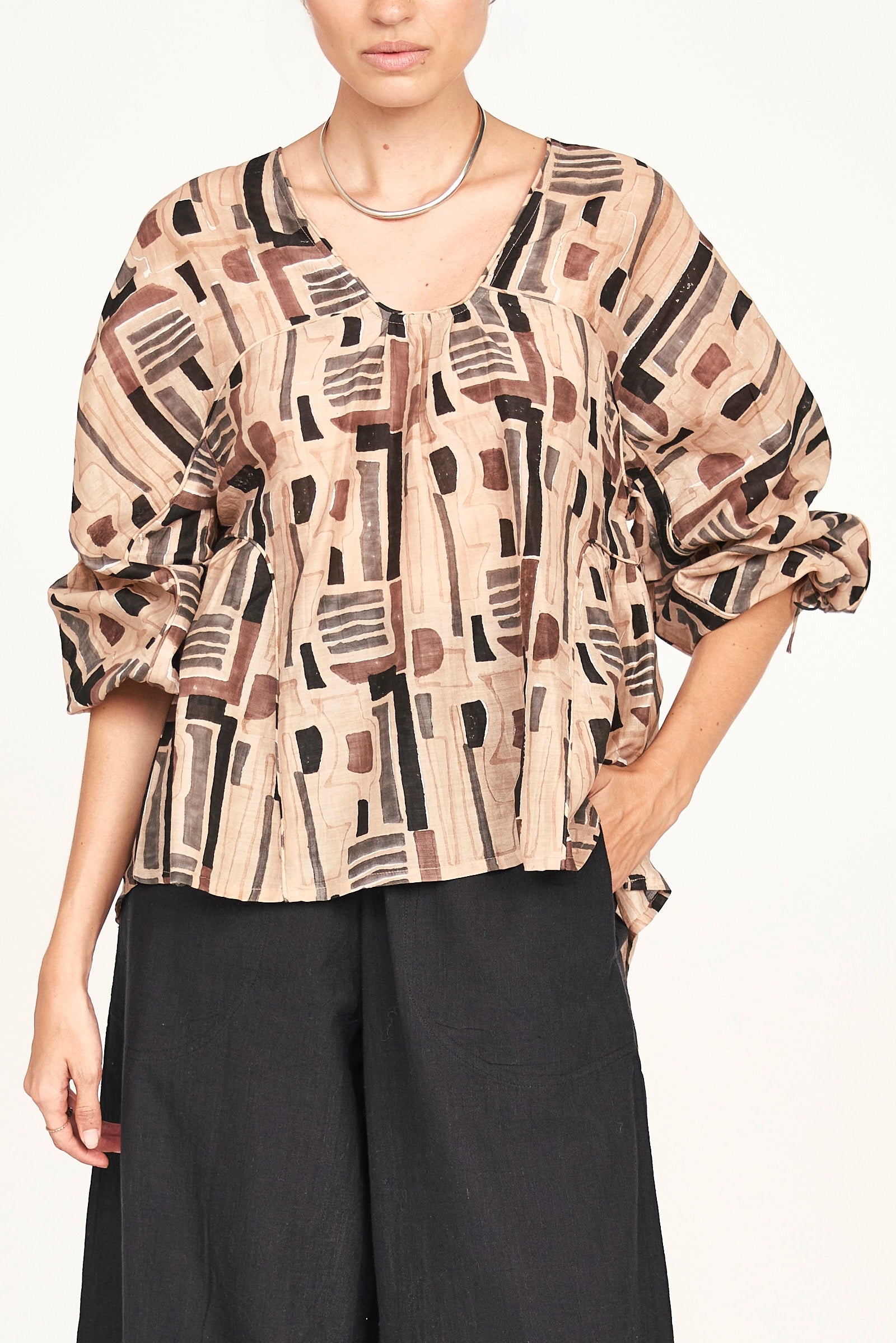Petaluma Blouse in Sand Labyrinth