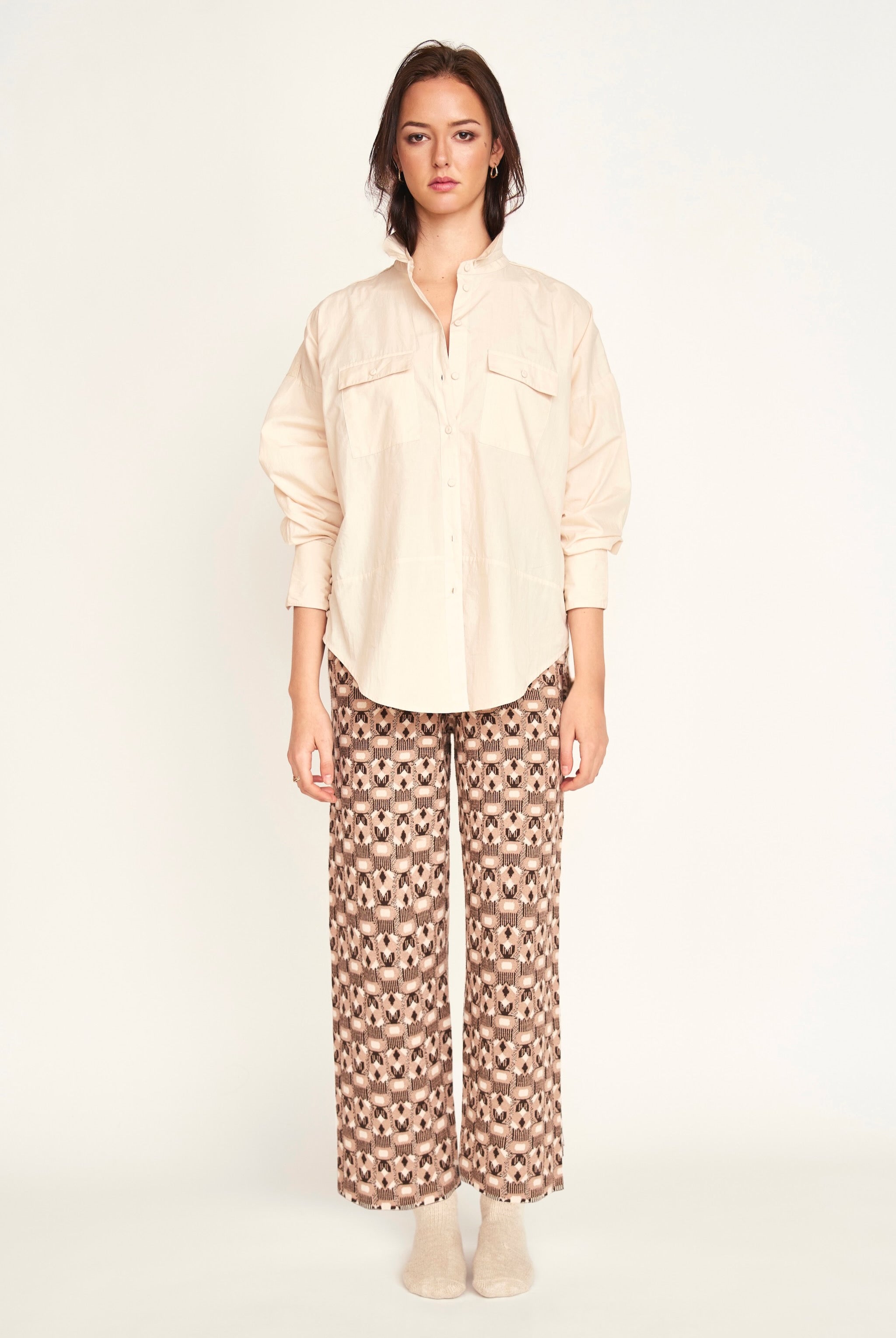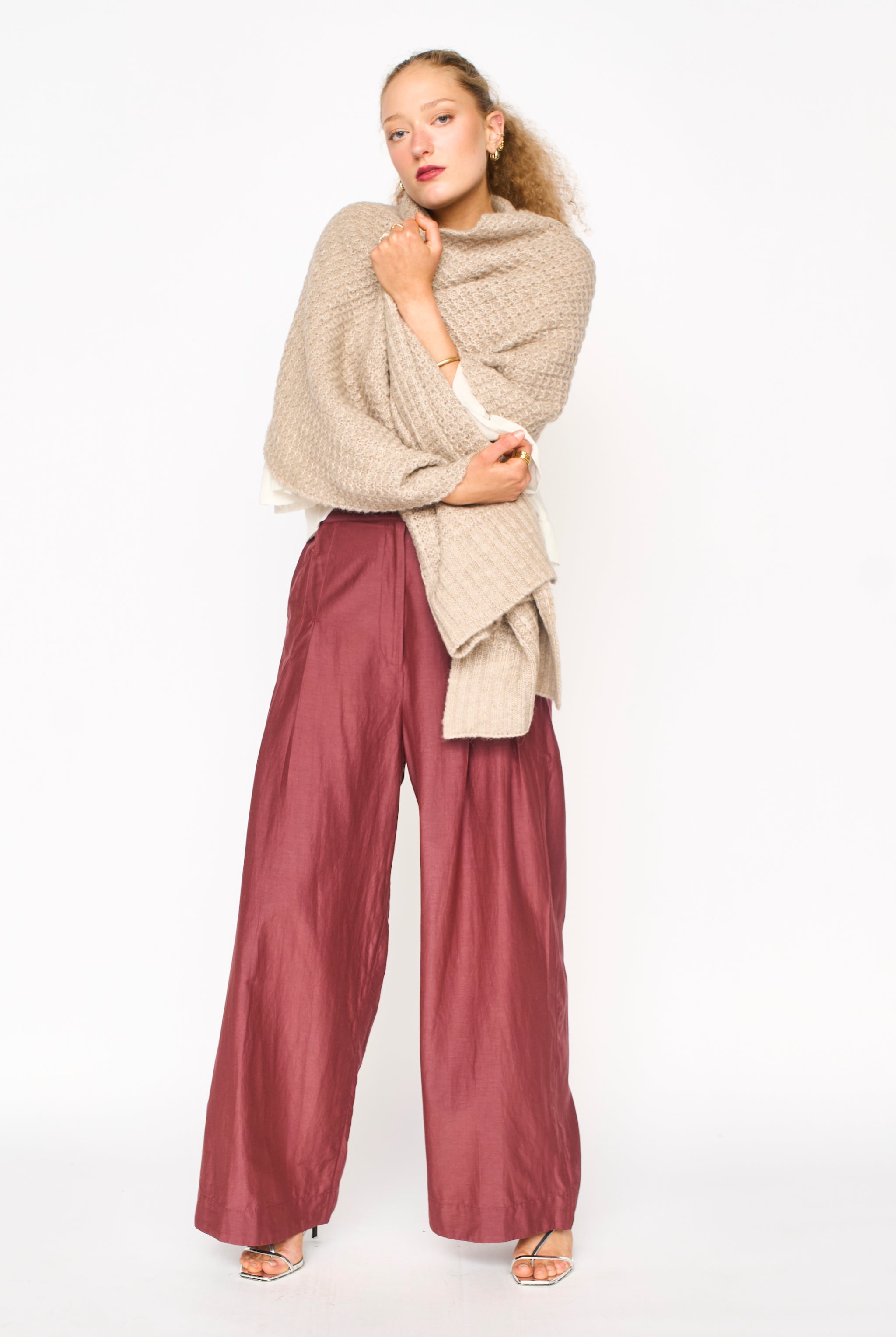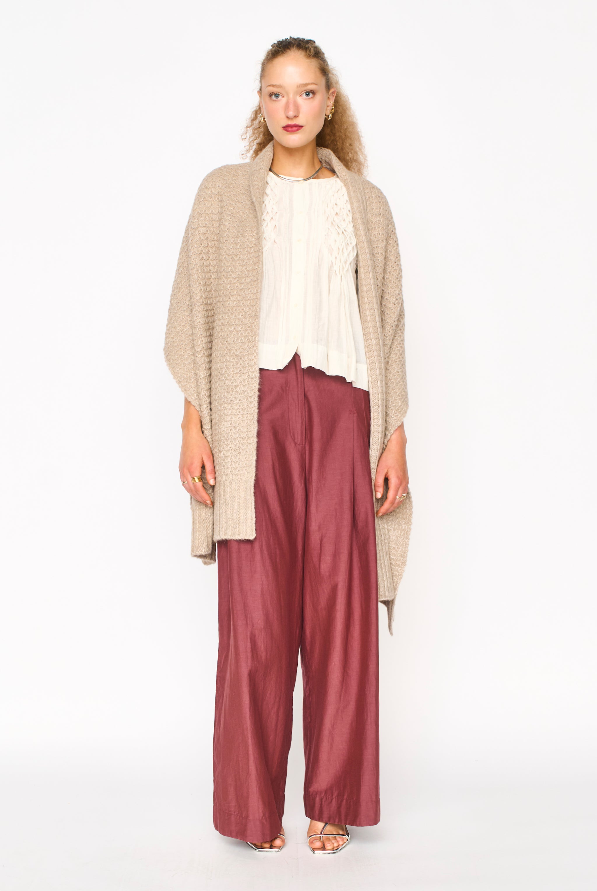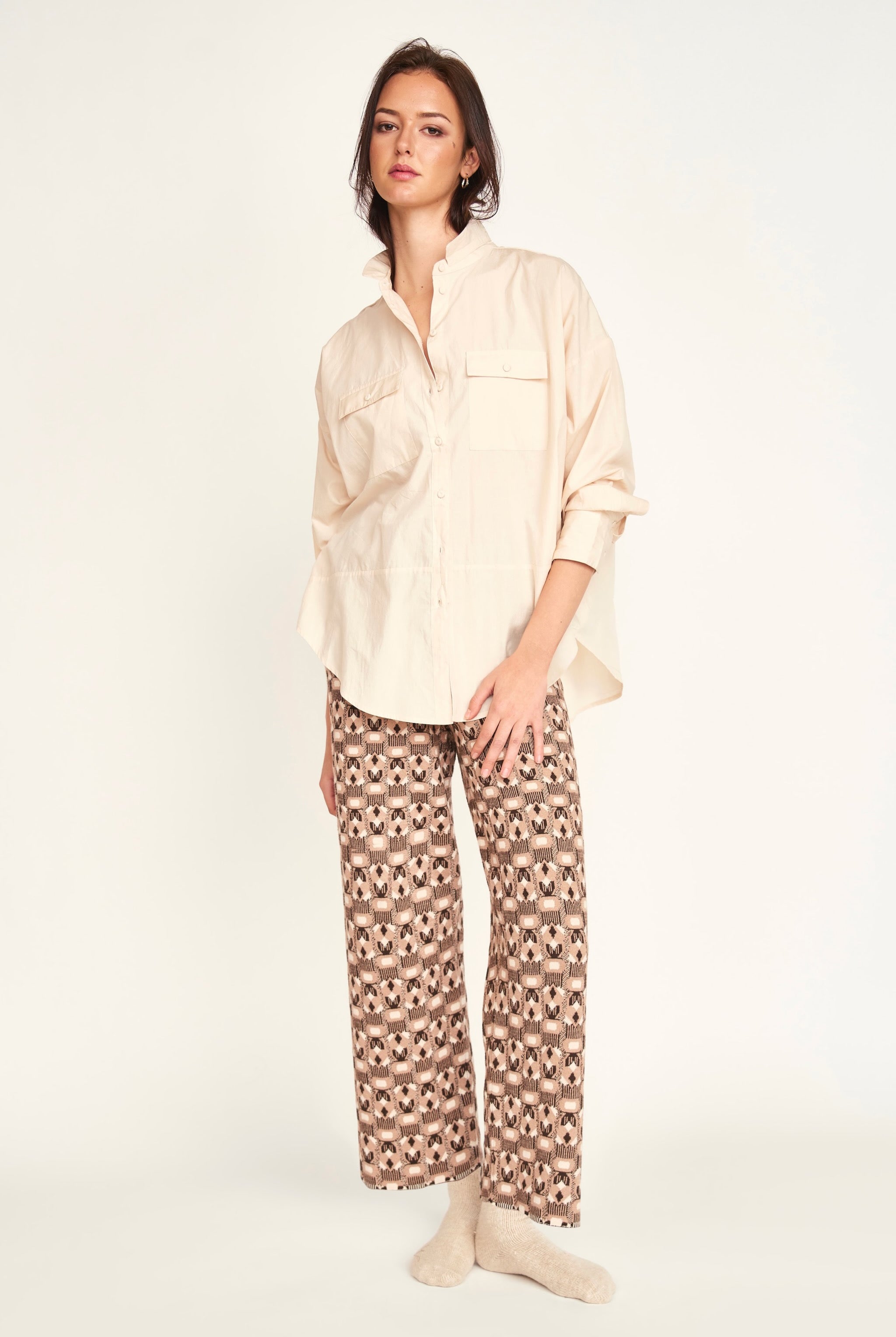 From vintage-leaning plaids and abstract prints to dolman sleeve sweaters, a pointelle dotted with tiny lizards (see if you can spot ‘em), and a special hand-knit shawl, this collection is made for now and the months ahead.