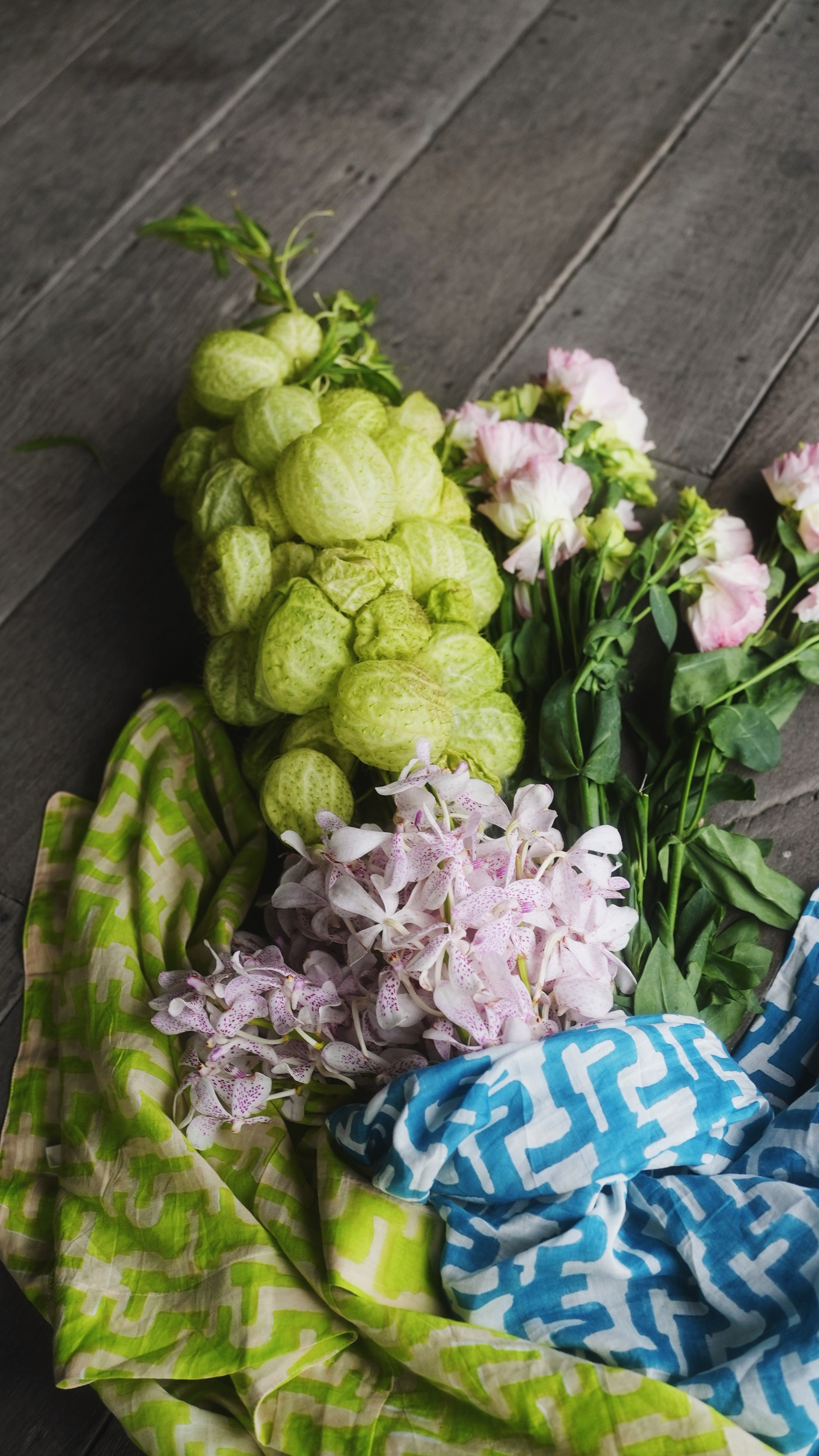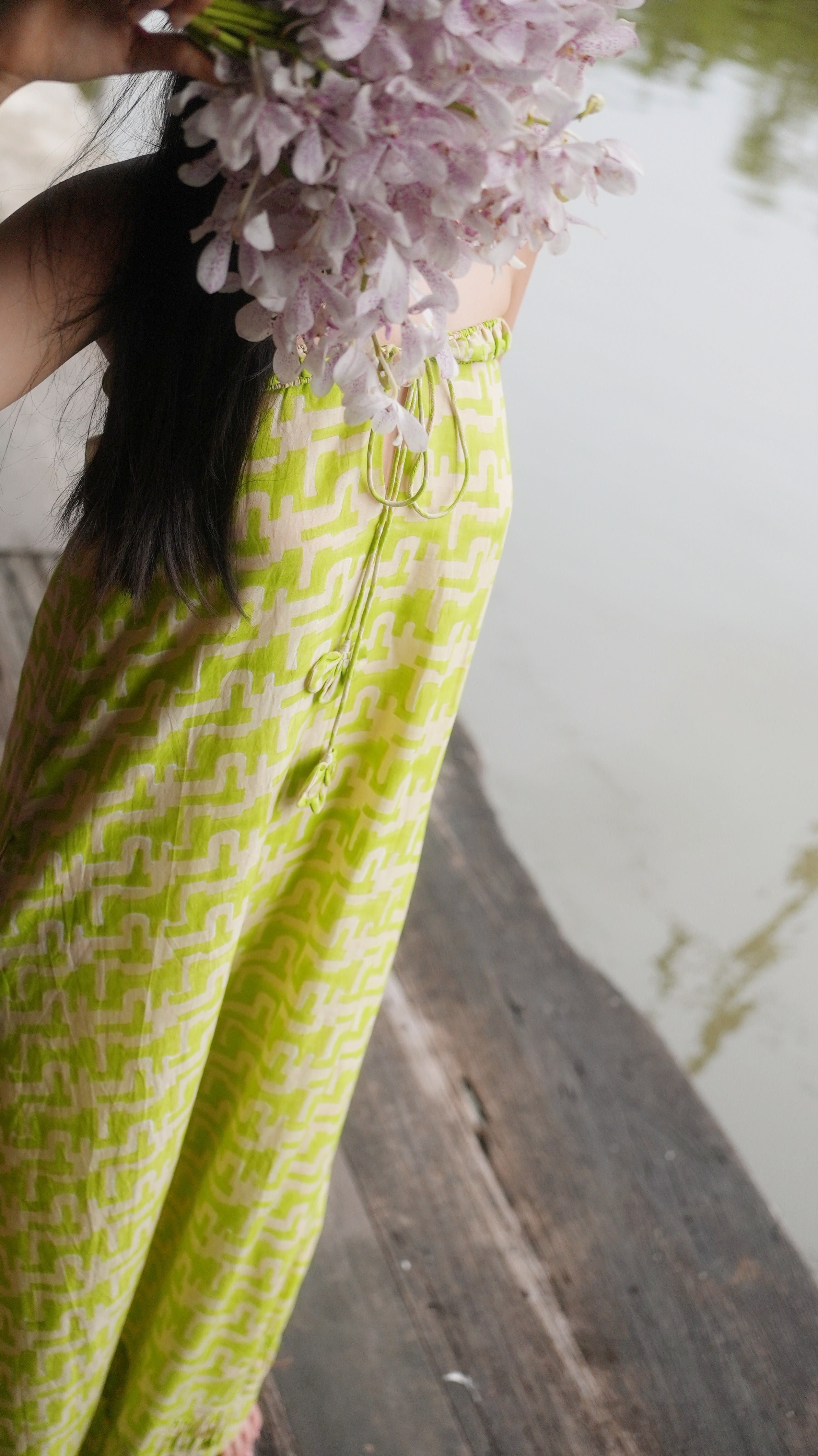 Punchy lime green, bright blue, and conch pink show up in easy silhouettes, matching sets, and the new Popova print.