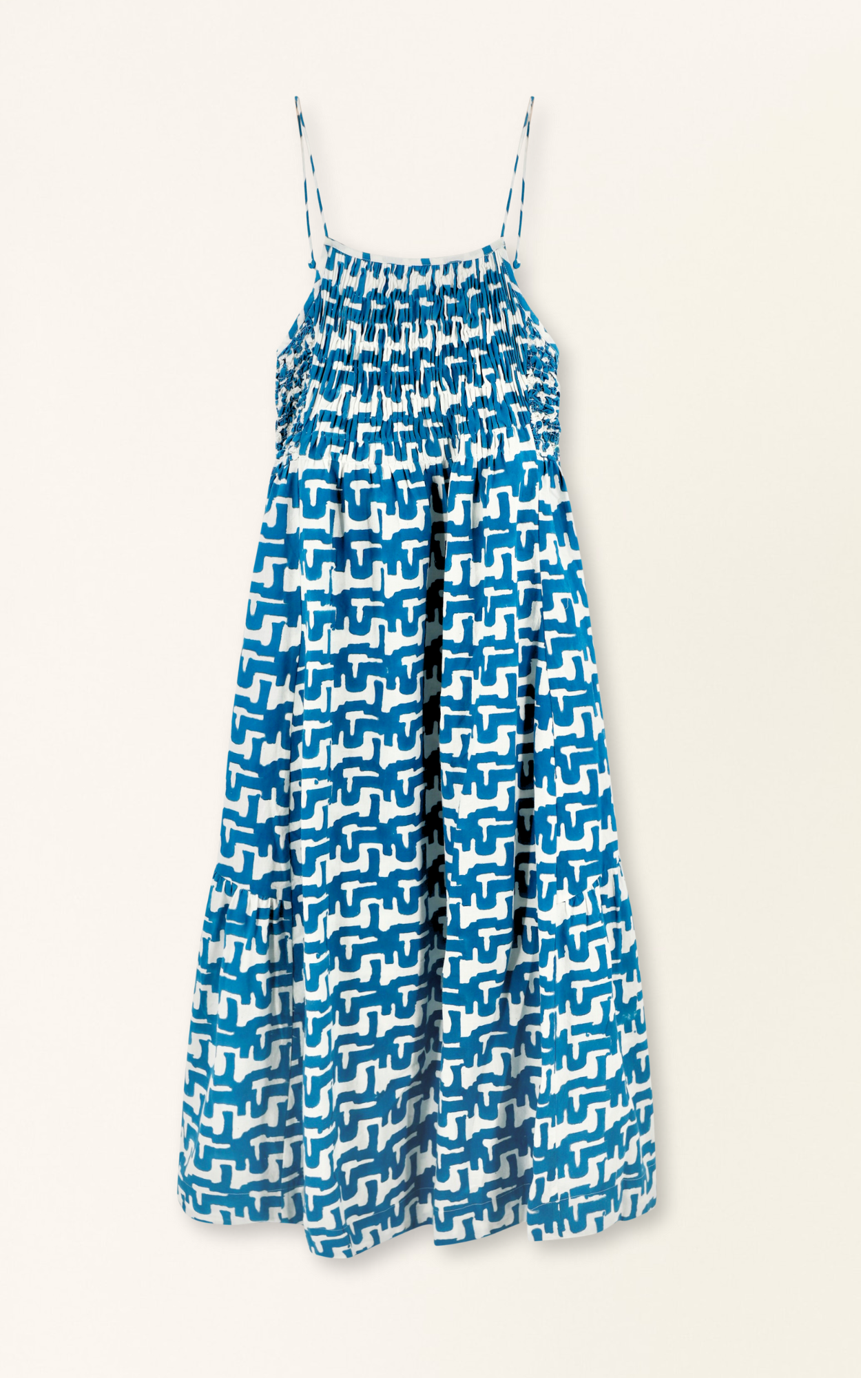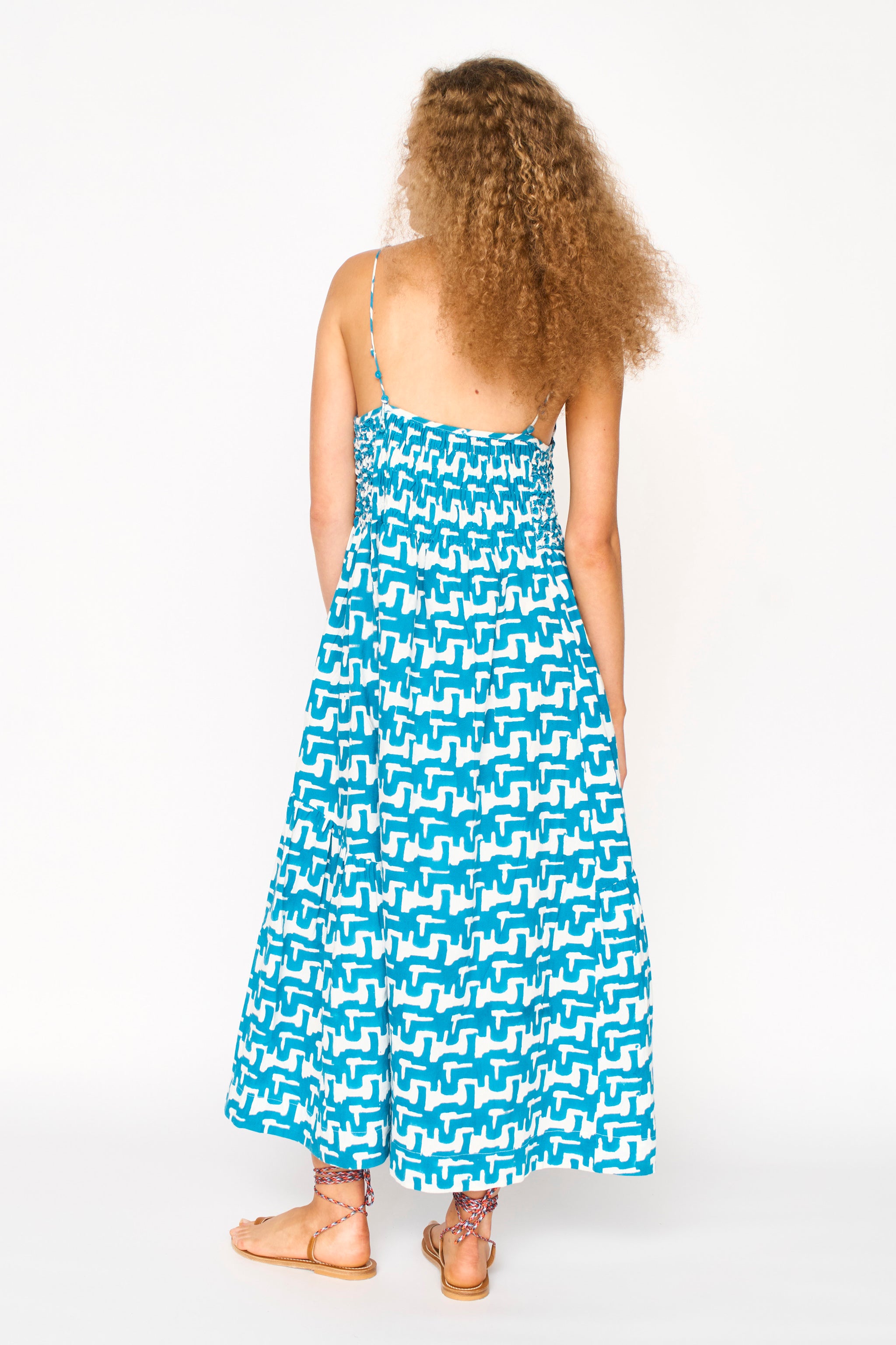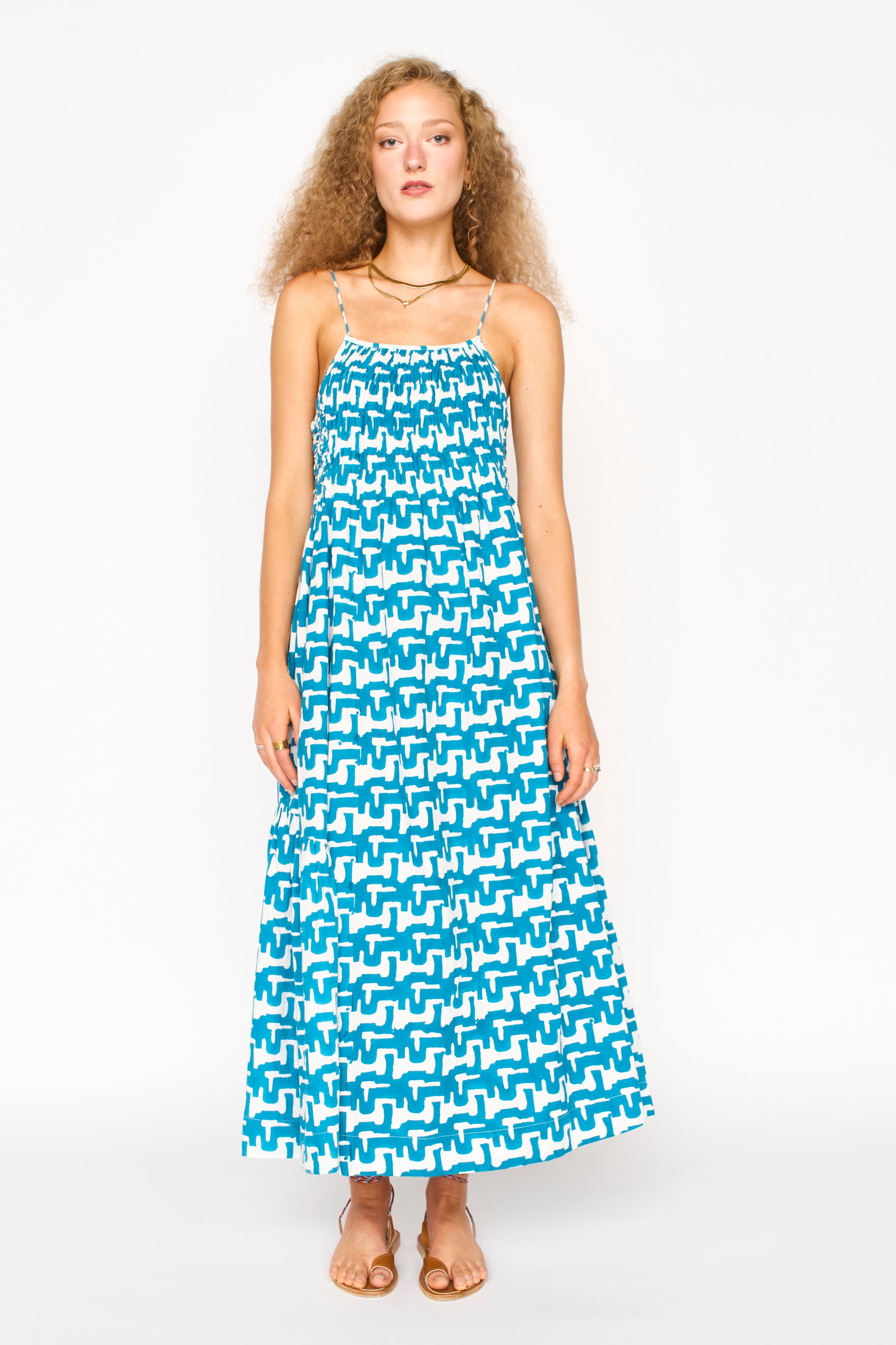 • Midi length sundress with smocked and cartridge pleat elastic bodice