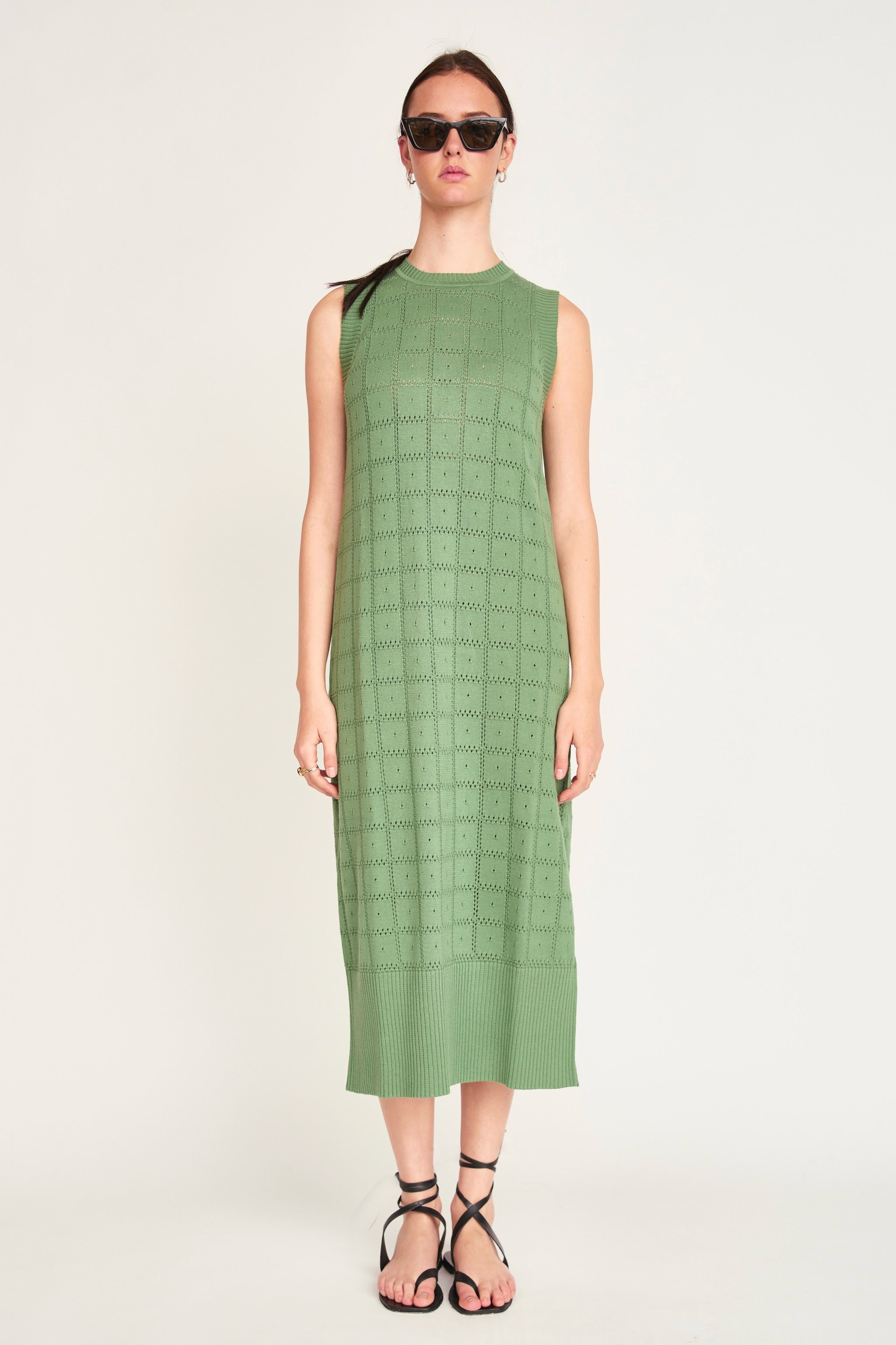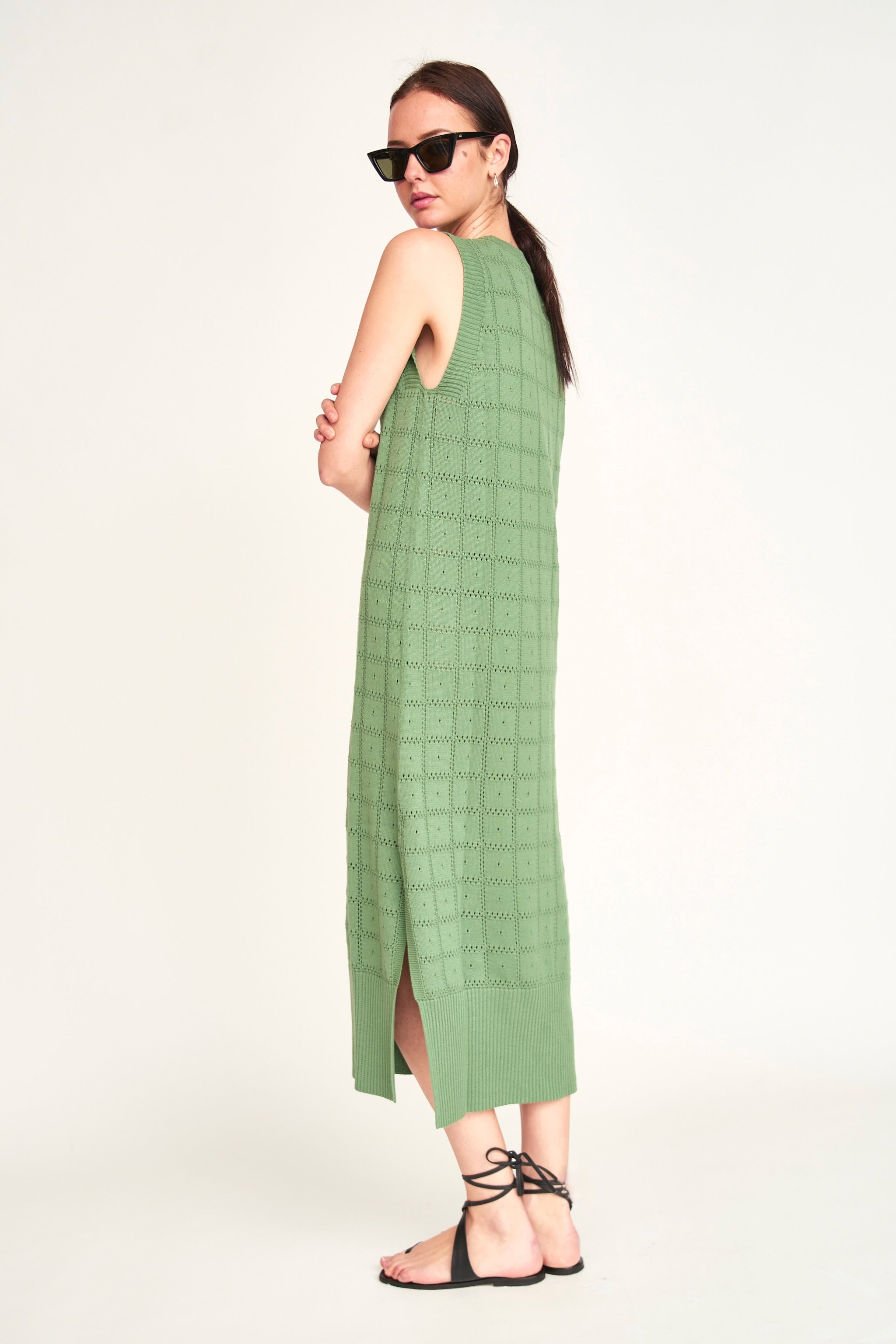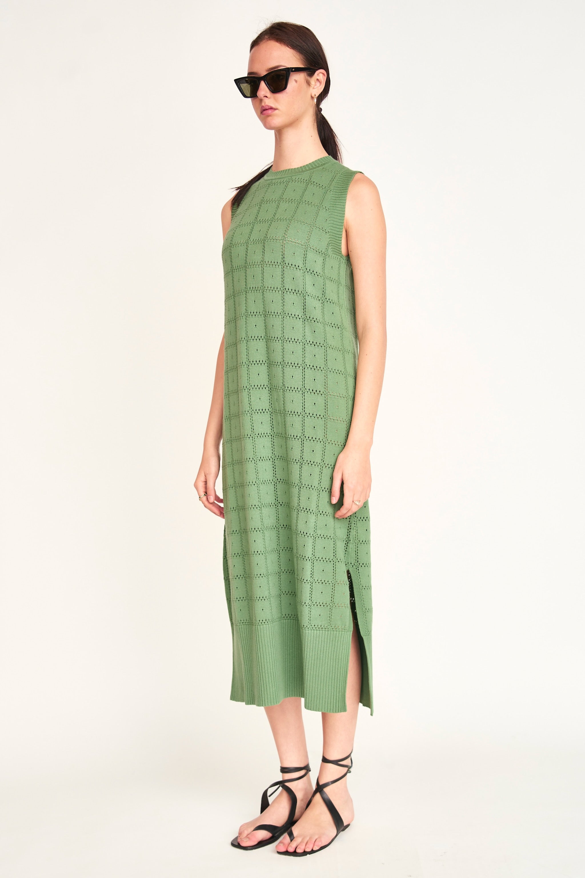 - Lightweight pointelle knit tank dress