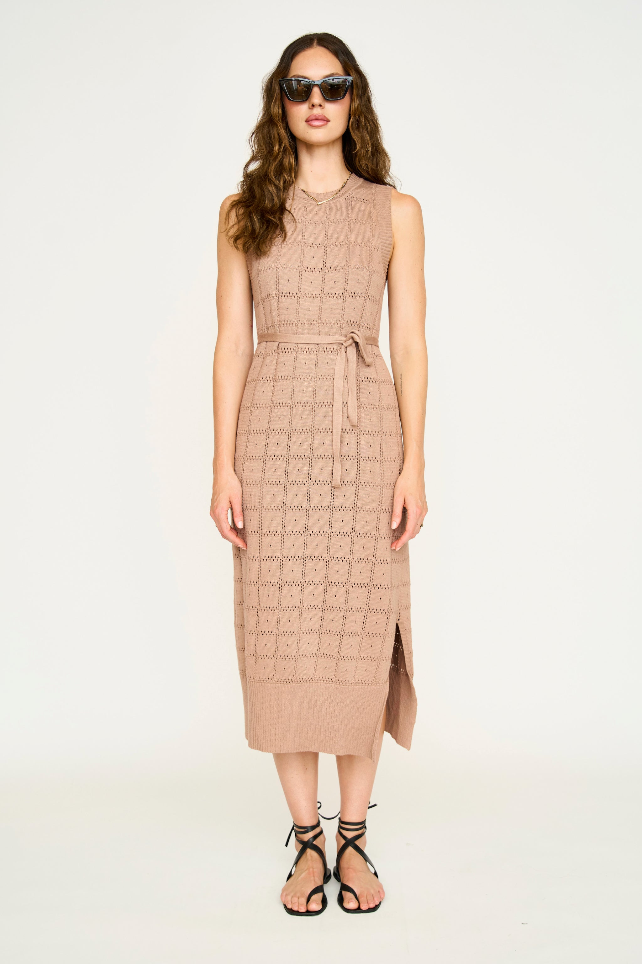 Kona Pointelle Knit Dress in Mocha