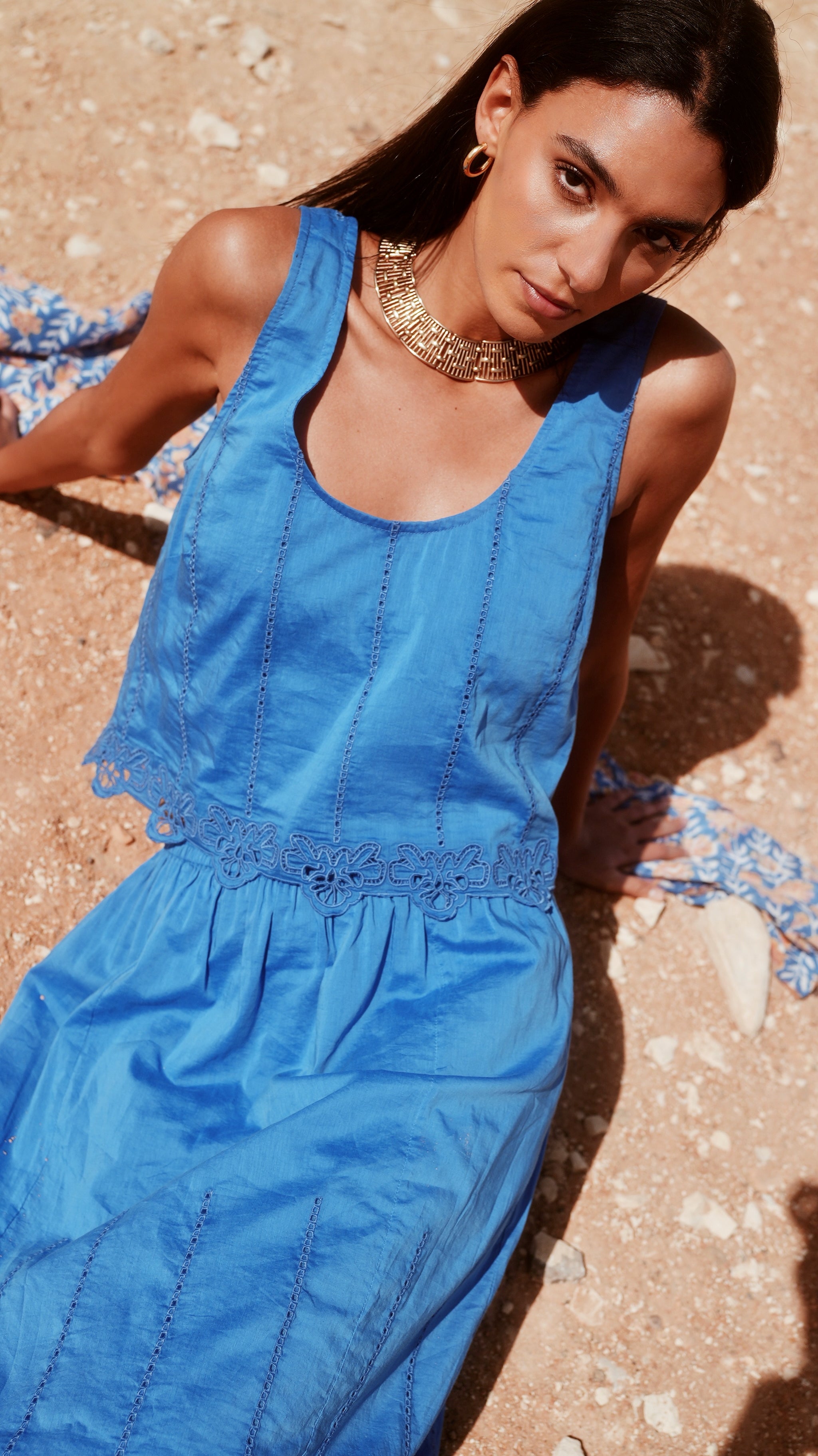 Orinda Tank in Egyptian Blue Lotus Eyelet (Starts Shipping April 30th)