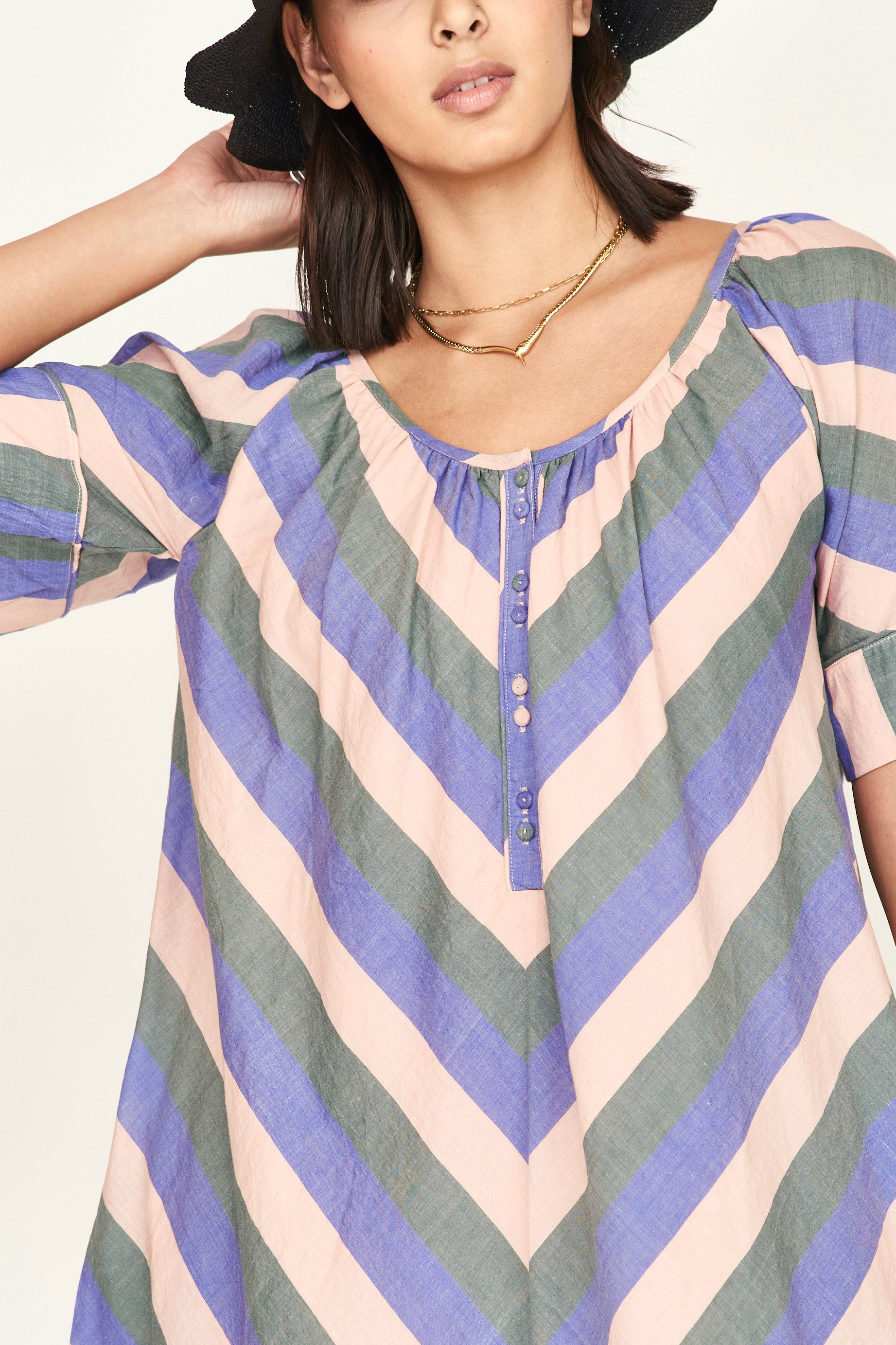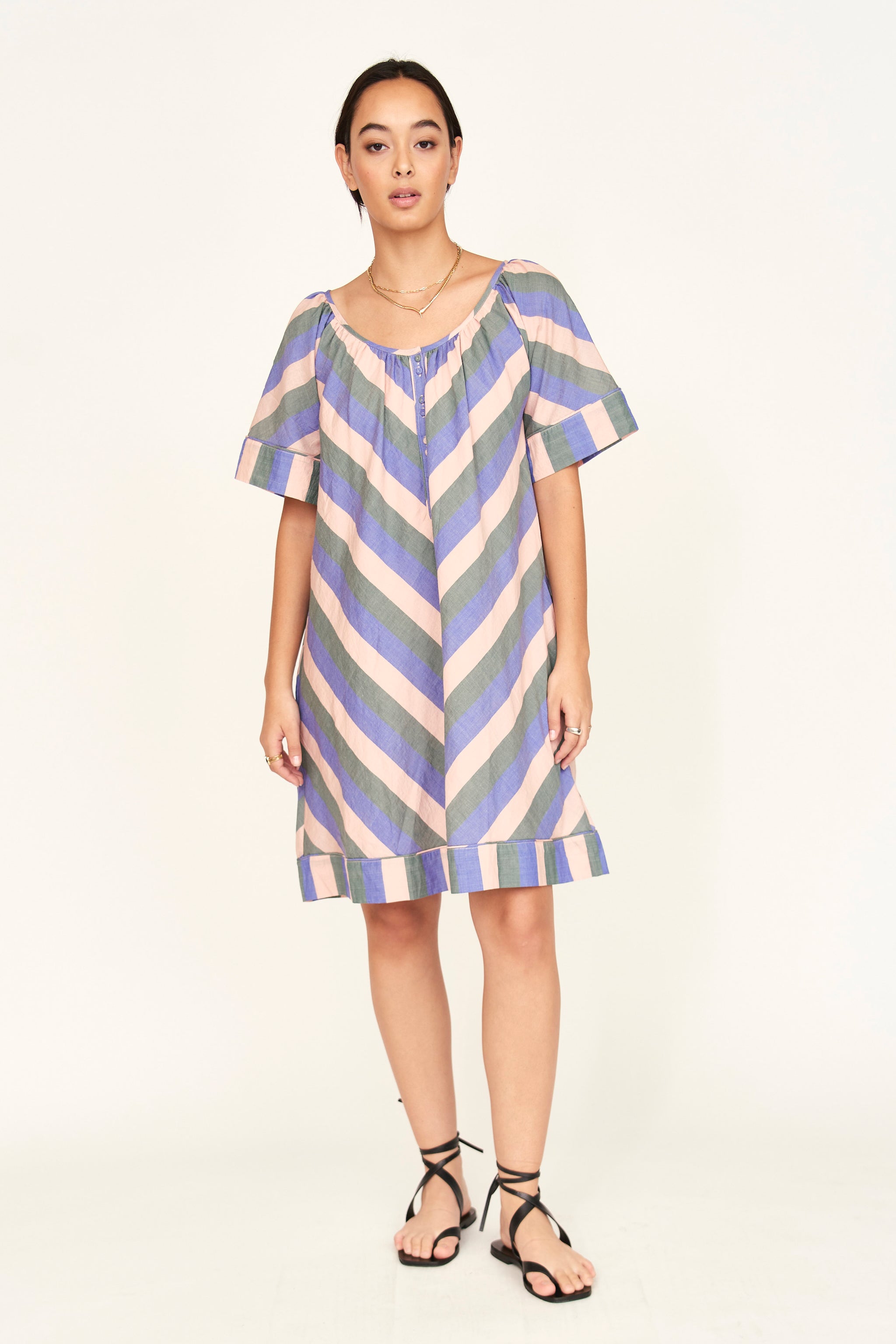 SAMPLE / Seville Short Dress in Carnival Stripe - FINAL SALE