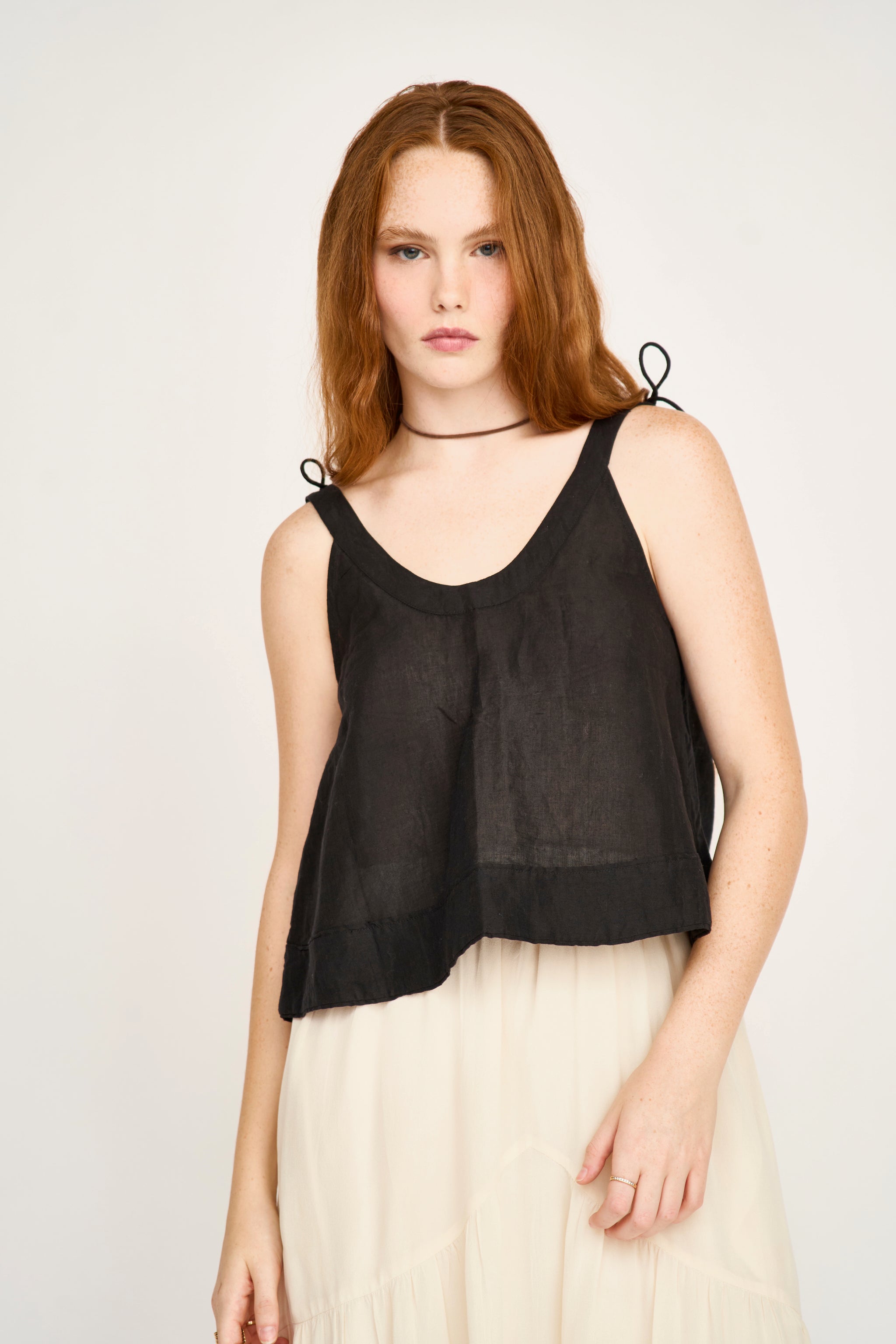 Siena Tank in Black Linen (Starts Shipping March 18th)