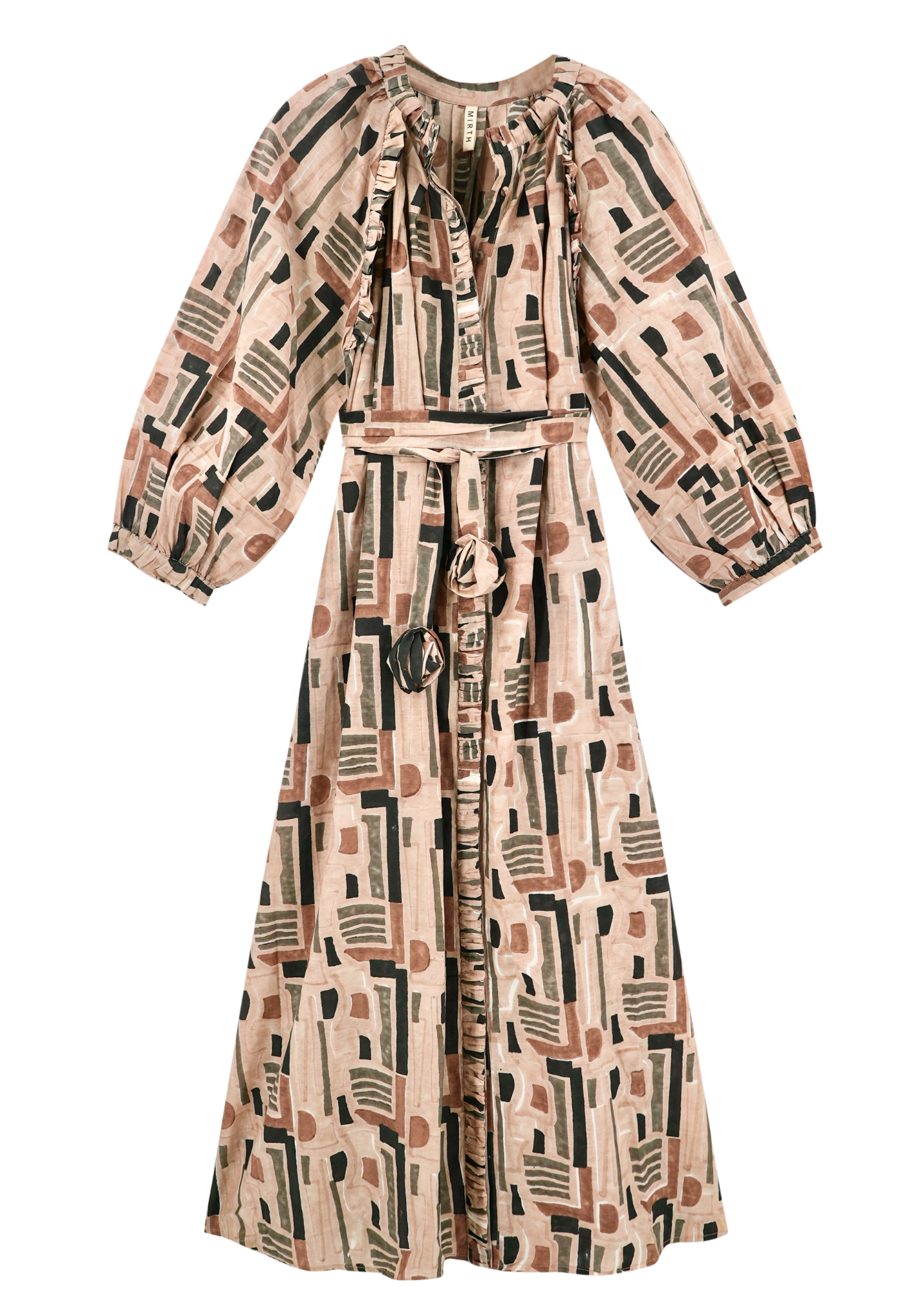 - Long sleeve maxi dress with tie belt